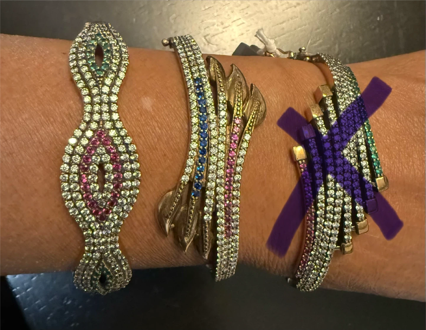 Three beautiful sterling silver with copper 7” bracelets, marked '925' and features colourful stones.