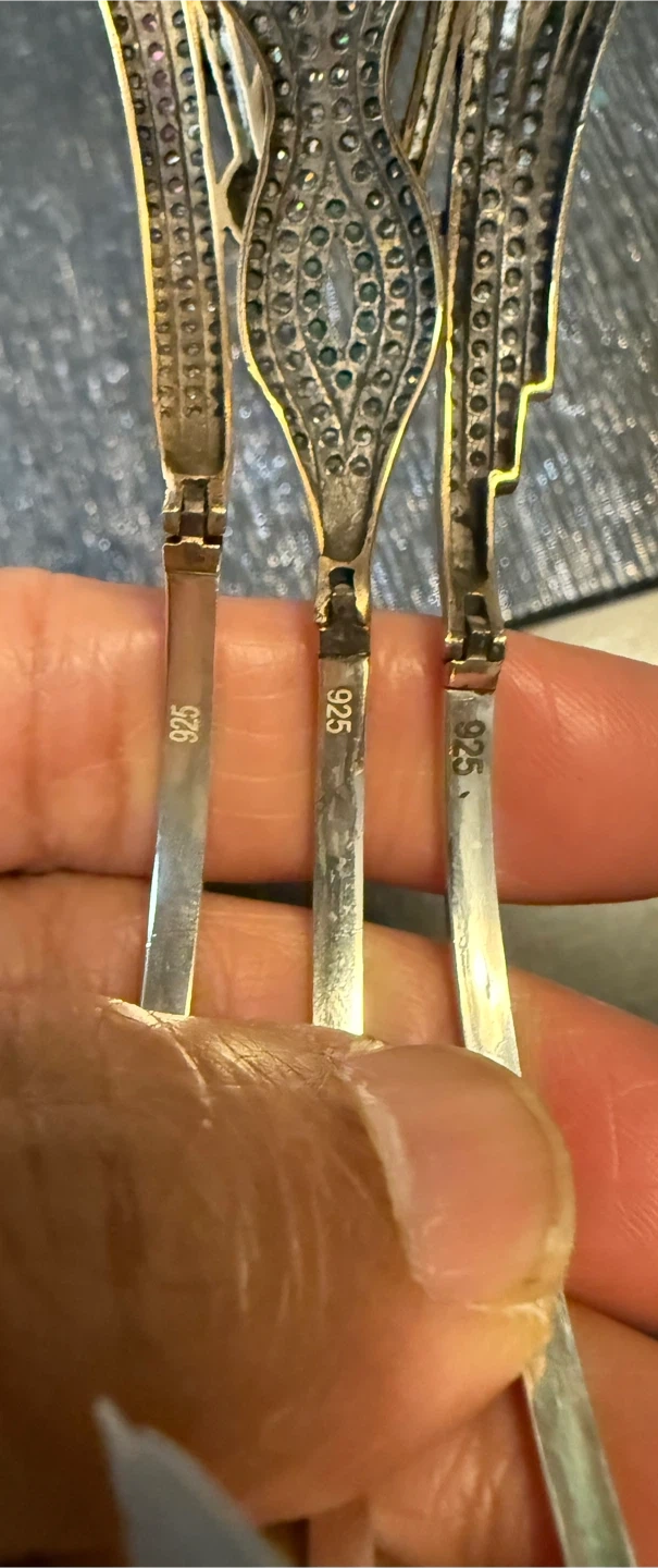 Three beautiful sterling silver with copper 7” bracelets, marked '925' and features colourful stones.