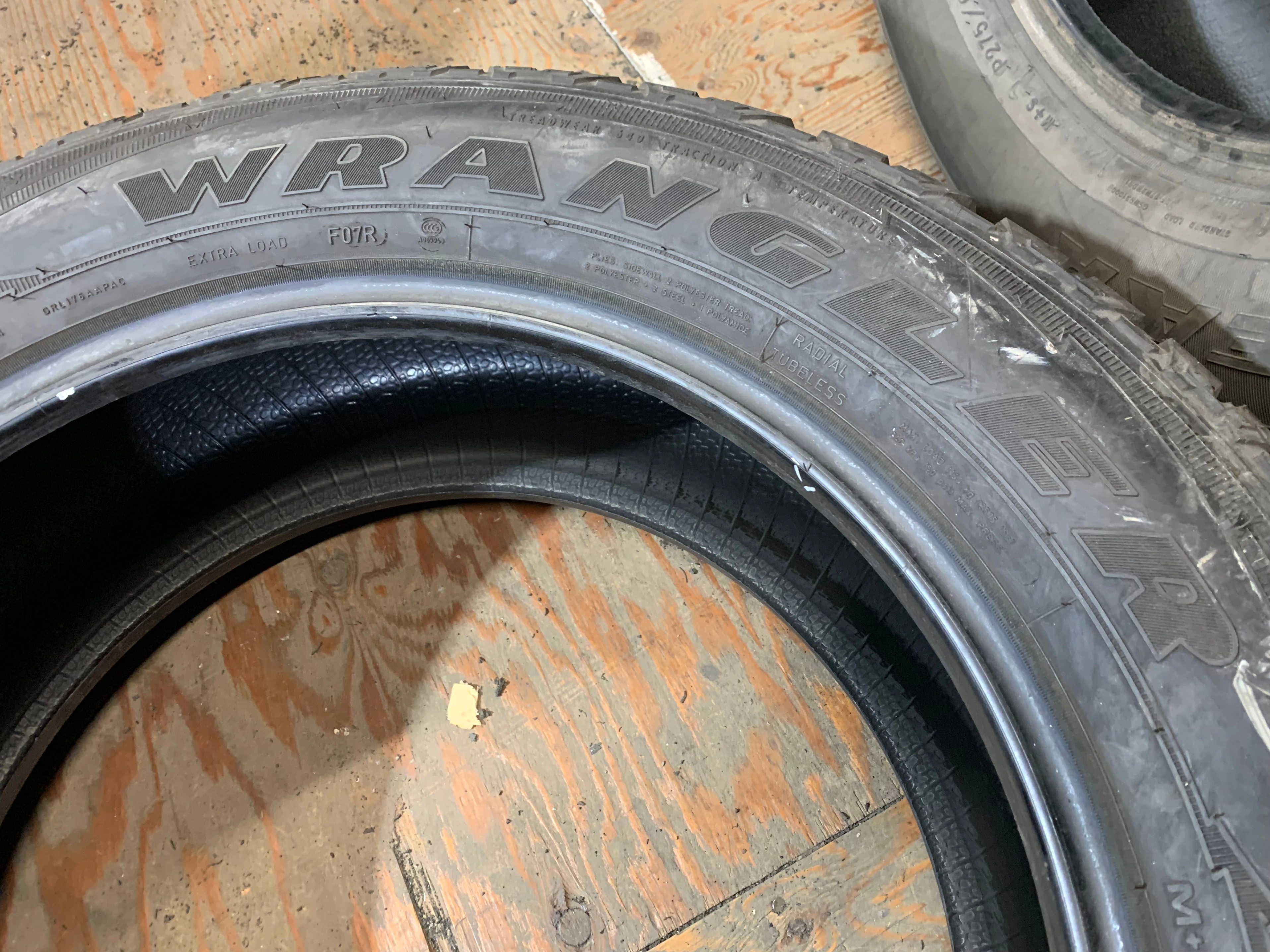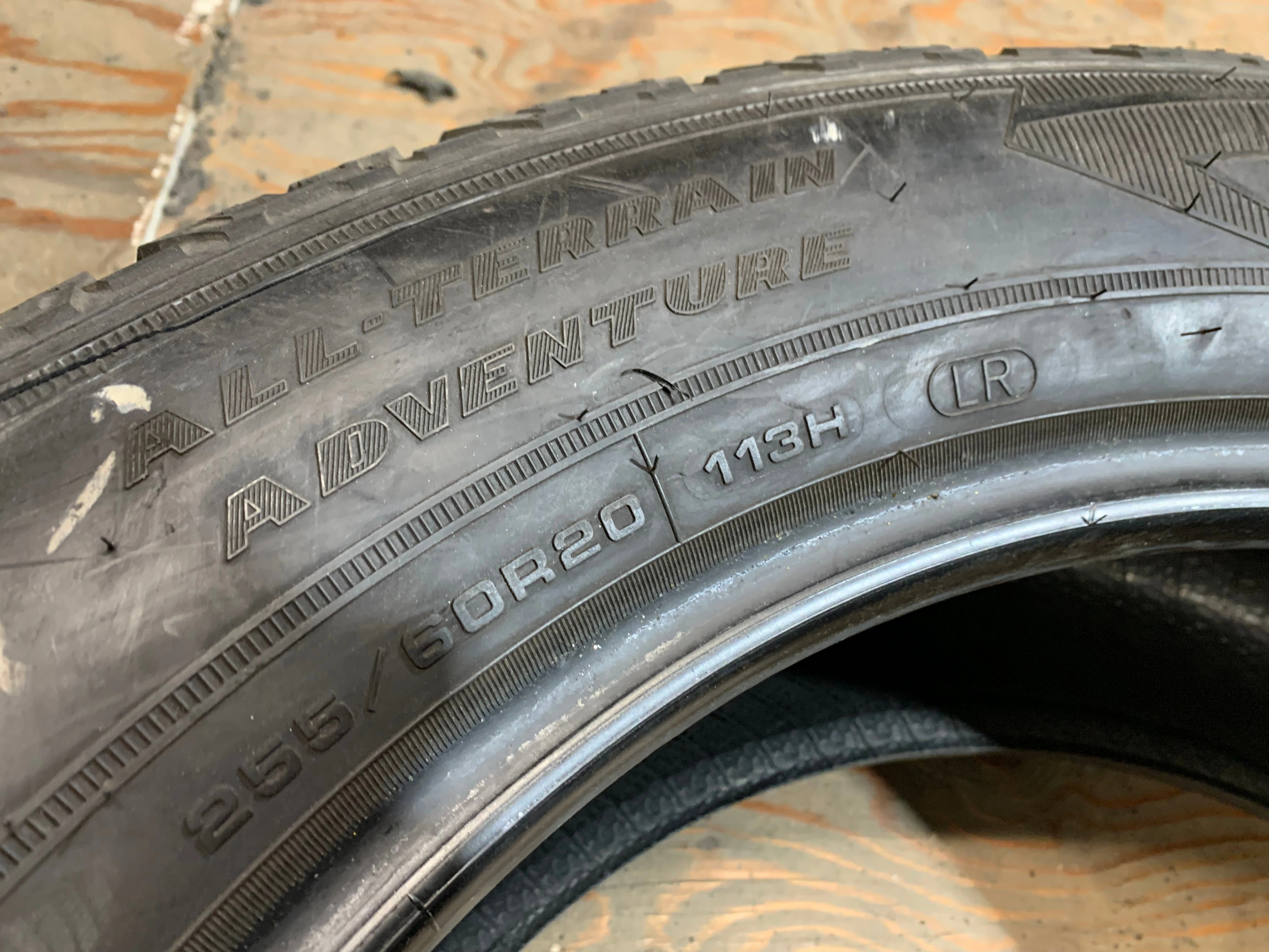 size 255/60/20 113H M+S Goodyear wrangler All terrain adventure LR with no repairs and 11/32nds 95% tread