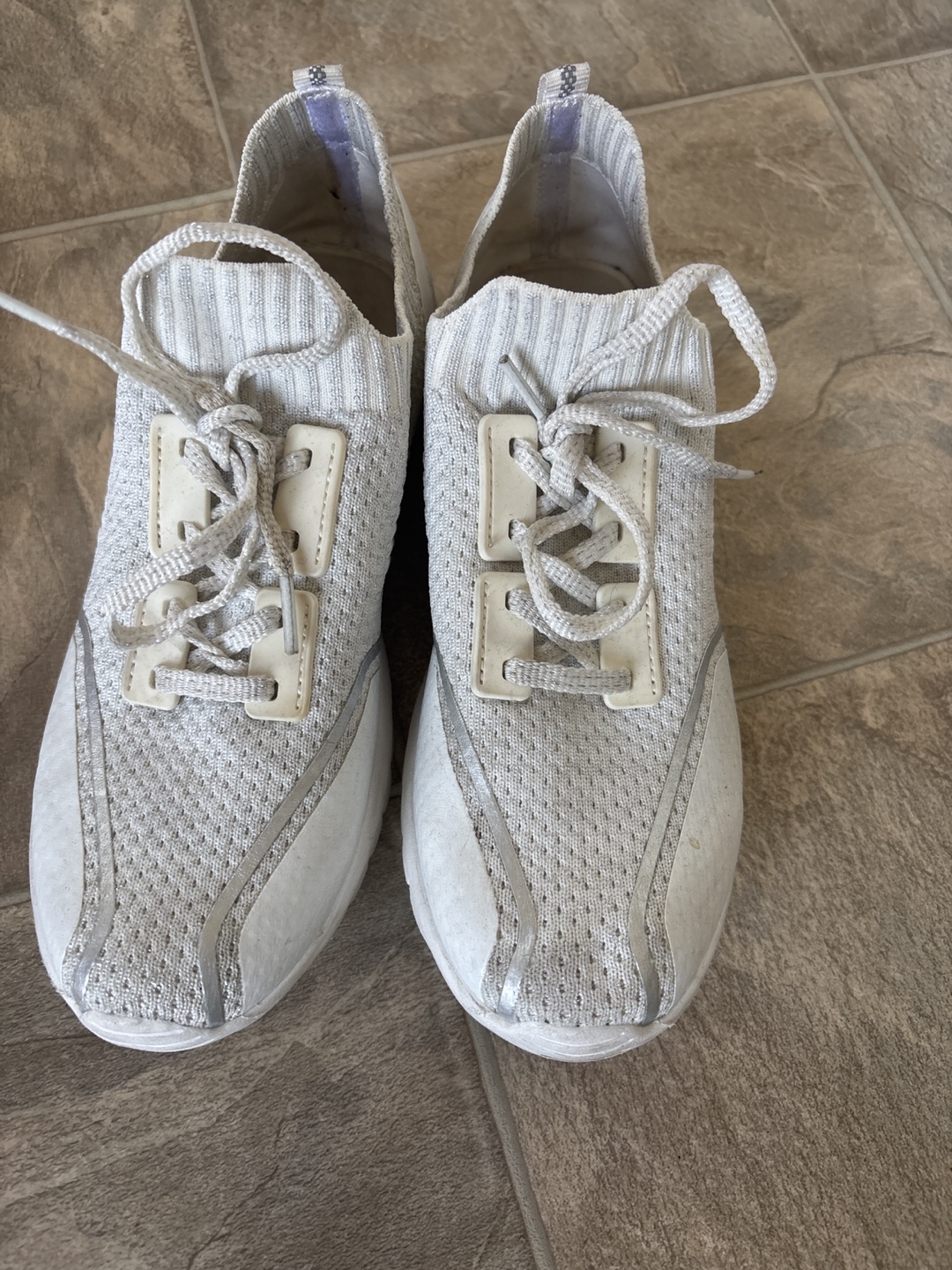 Selling a pair of Memory Foam MAX sneakers in white. They show some signs of wear but still have lots of life left! These are super comfy for everyday wear.