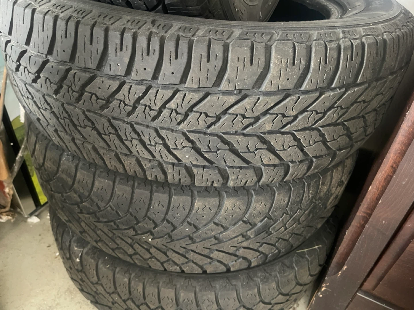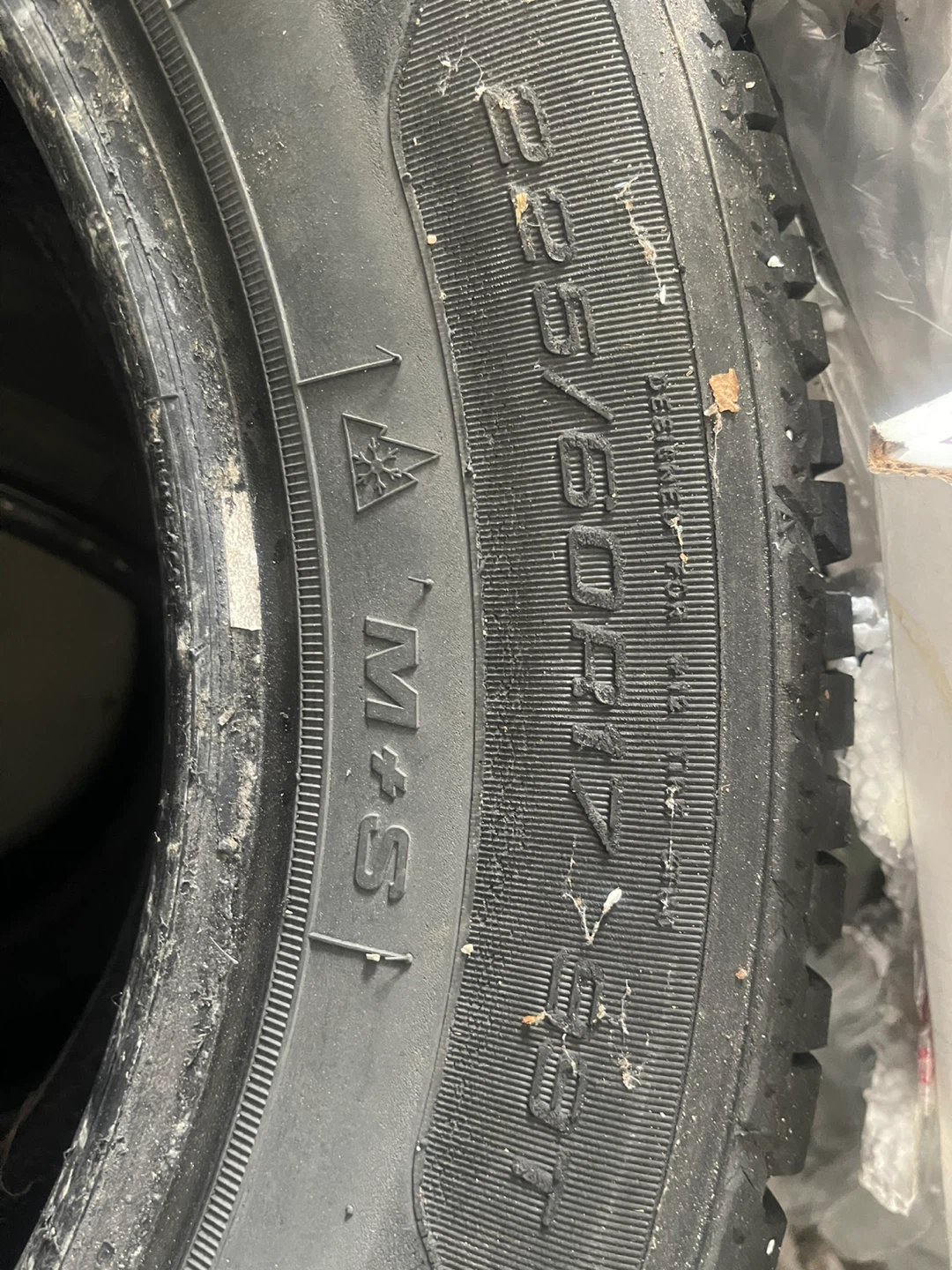 Selling a set of four used tires. The size is 235/60R18. They have the M+S (Mud and Snow) rating, so they are suitable for all seasons