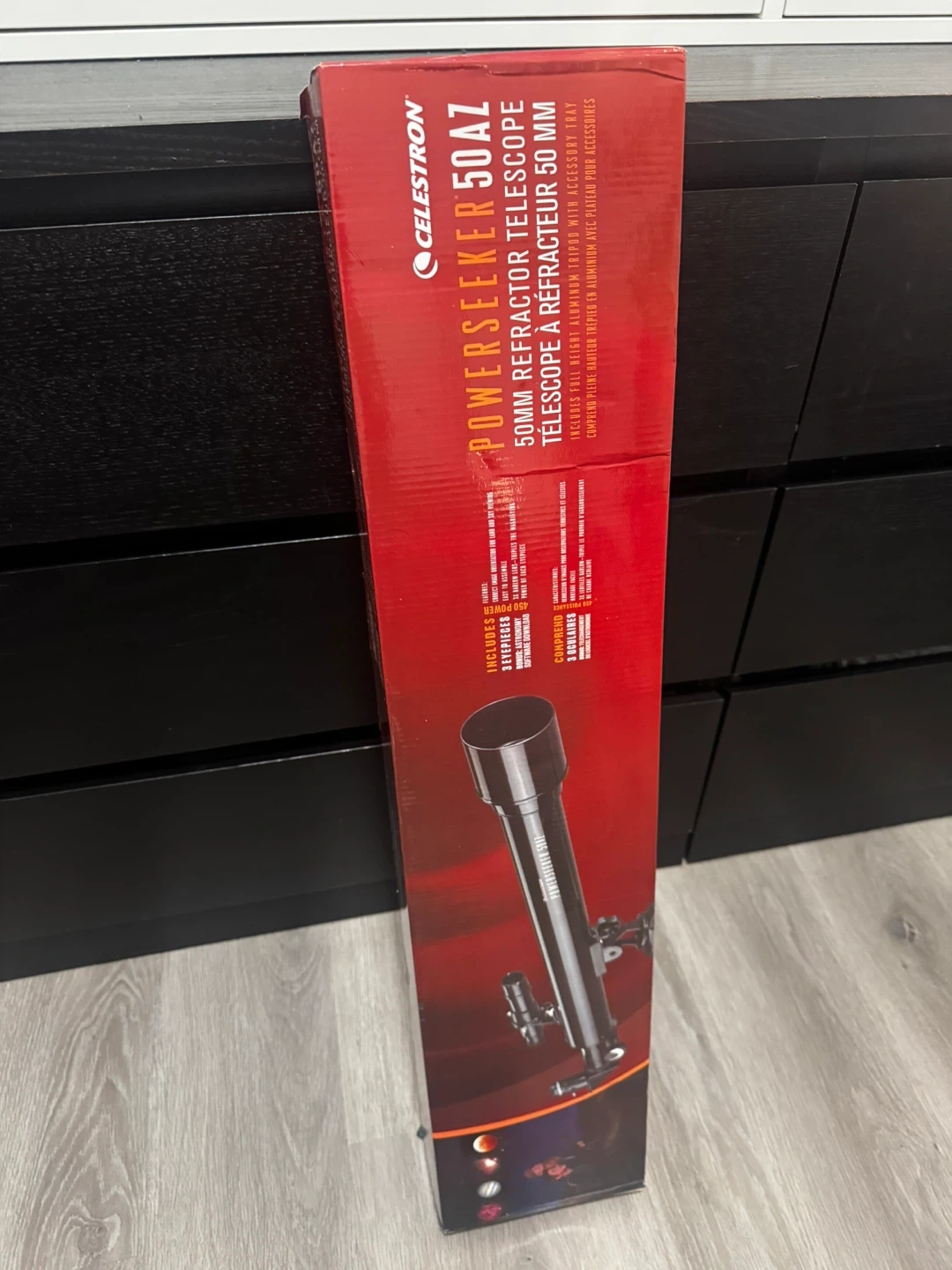 Unopened. This is a Celestron PowerSeeker 50AZ refractor telescope. It's a compact and portable model. Includes 3 eyepieces.