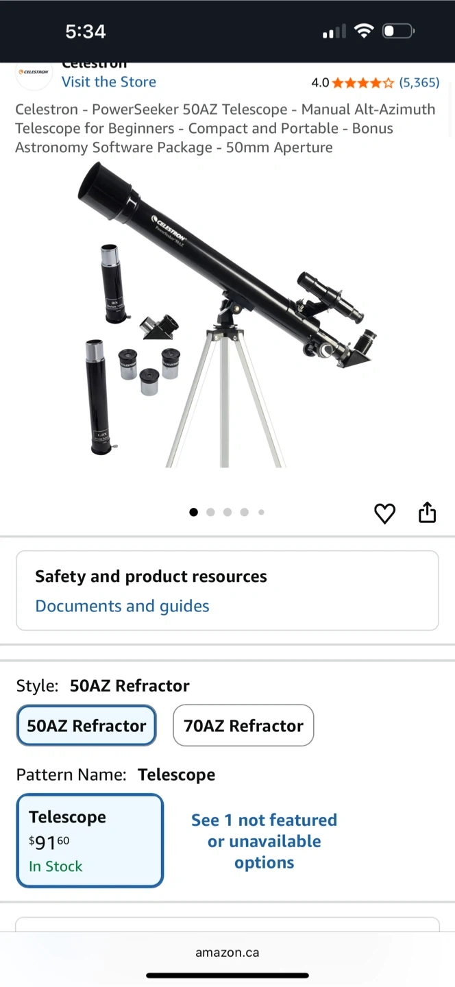 Celestron PowerSeeker 50AZ Refractor Telescope