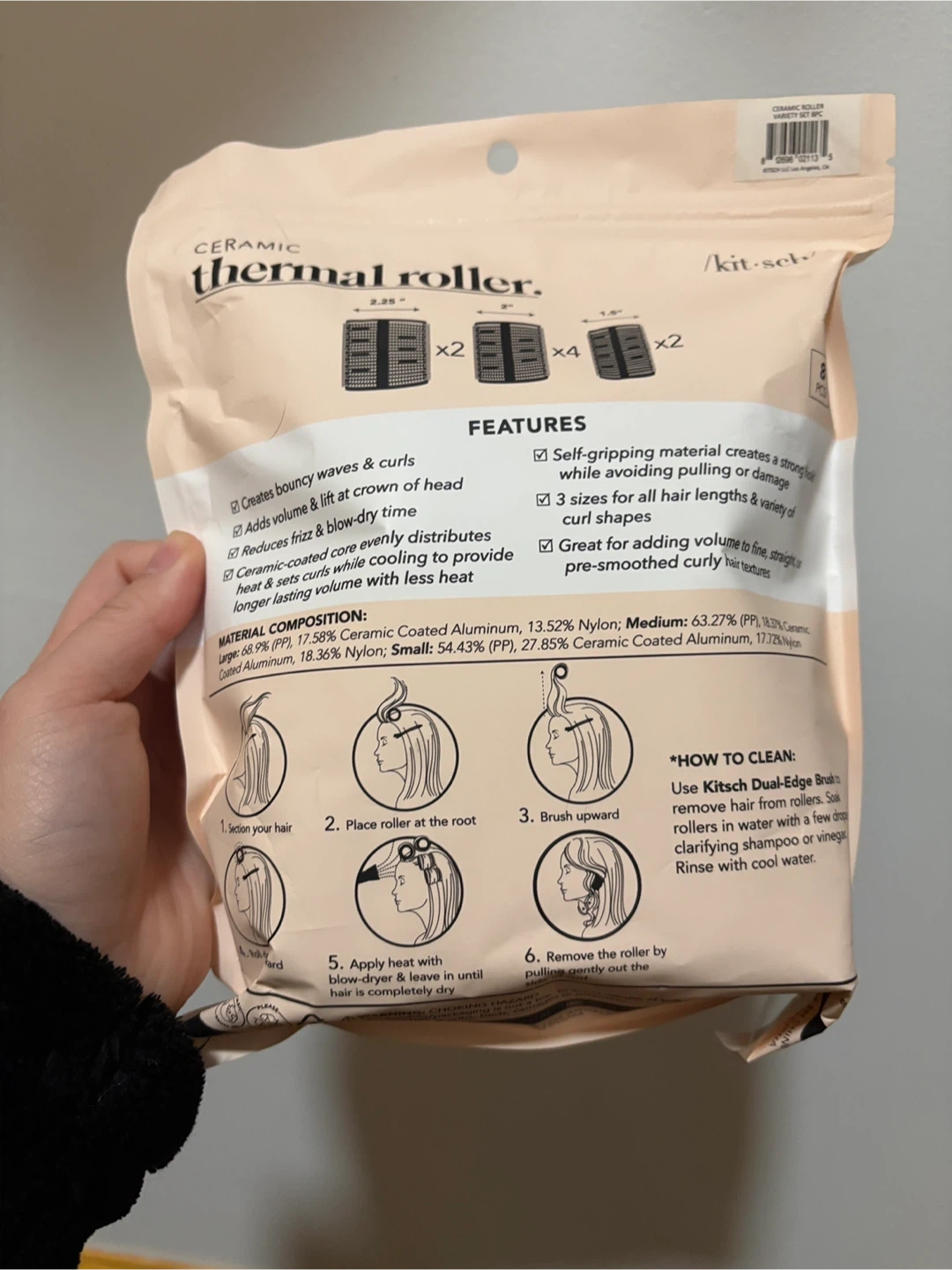 Get bouncy waves and curls with these Kitsch Ceramic Thermal Rollers! This set of 8 rollers adds volume and lift at the crown of your head while reducing frizz. The ceramic-coated core evenly distributes heat while cooling, providing long-lasting volume with less heat. Perfect for adding volume to fine, straight, or pre-smoothed curly hair textures. Includes self-gripping material to create a strong hold without pulling or damage