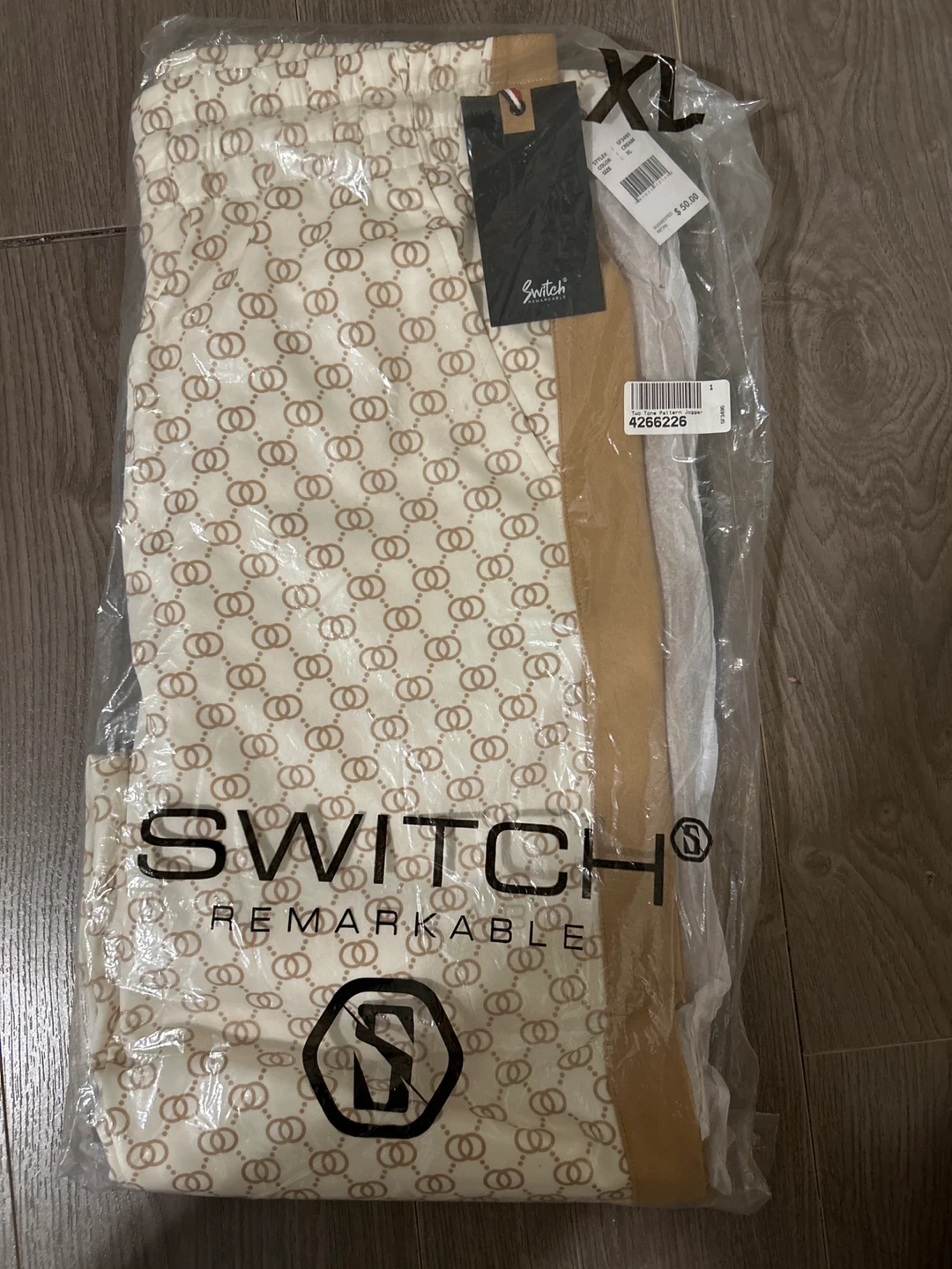 Selling a brand new pair of Switch Remarkable joggers! These are a size XL and come in a cream colour with a unique two-tone pattern. The suggested retail price was $50.00. Perfect for lounging or casual wear!