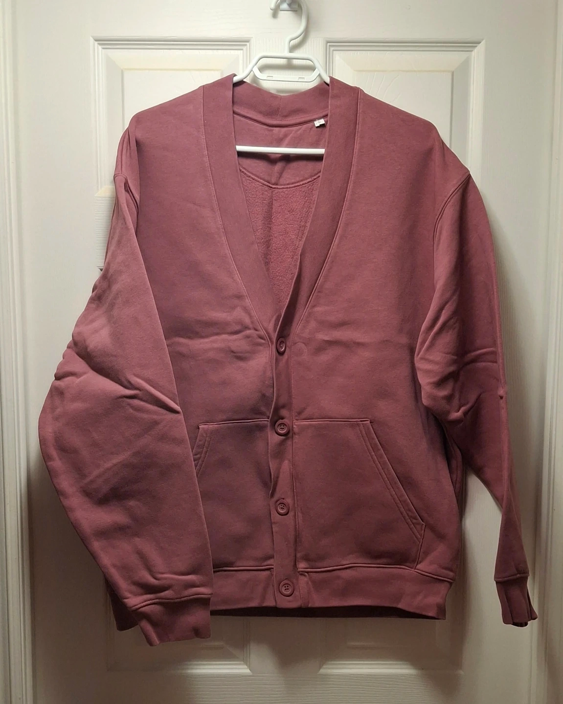 A brand new Stanley/Stella pink cotton/polyester cardigan with elasticized cuffs.