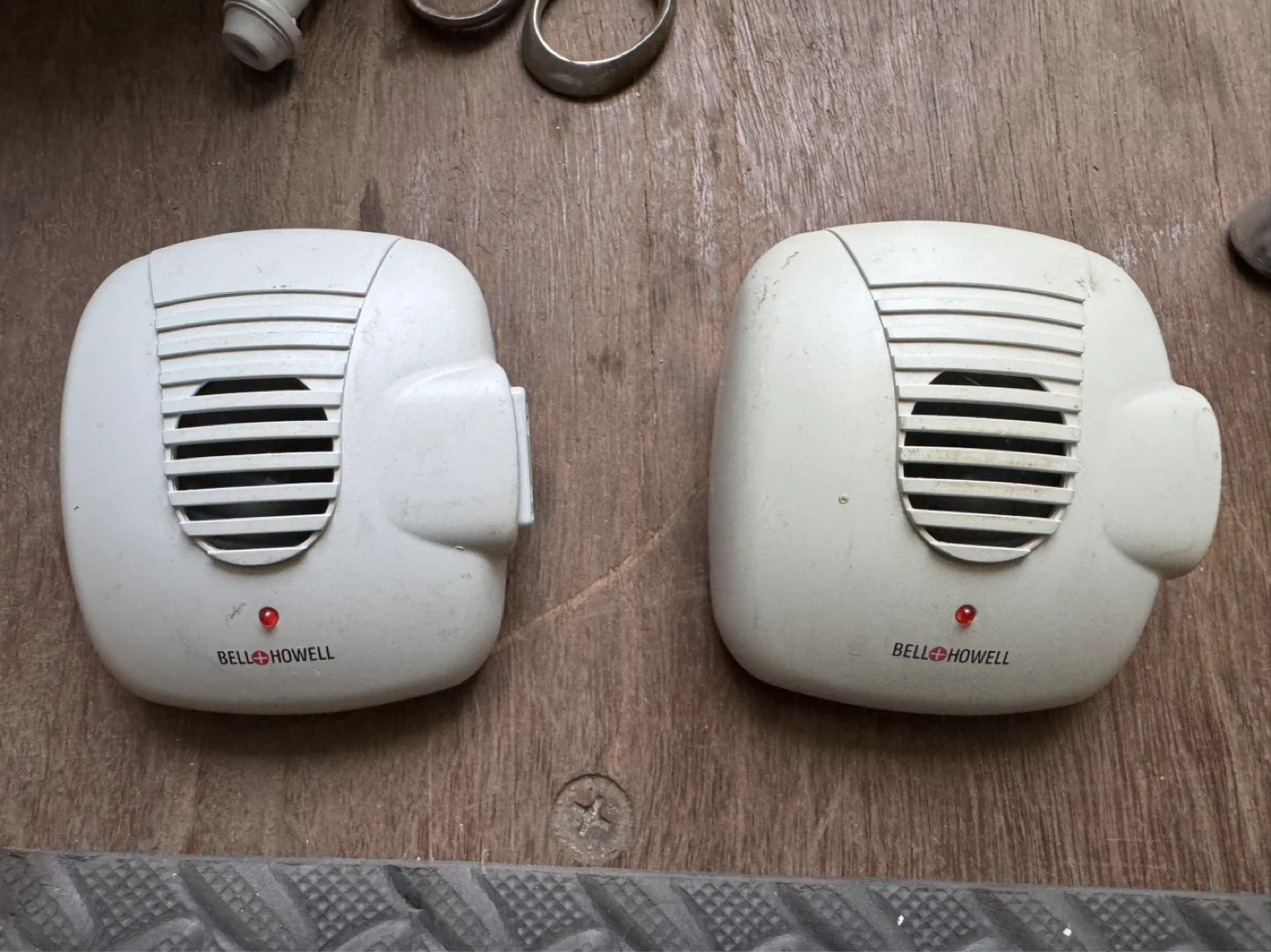 Set of two Bell+Howell ultrasonic pest repellers. These plug directly into a wall outlet. They operate on 120VAC, 60Hz, and use 2.6W. For indoor household use only. $20 each. Located in Oliver