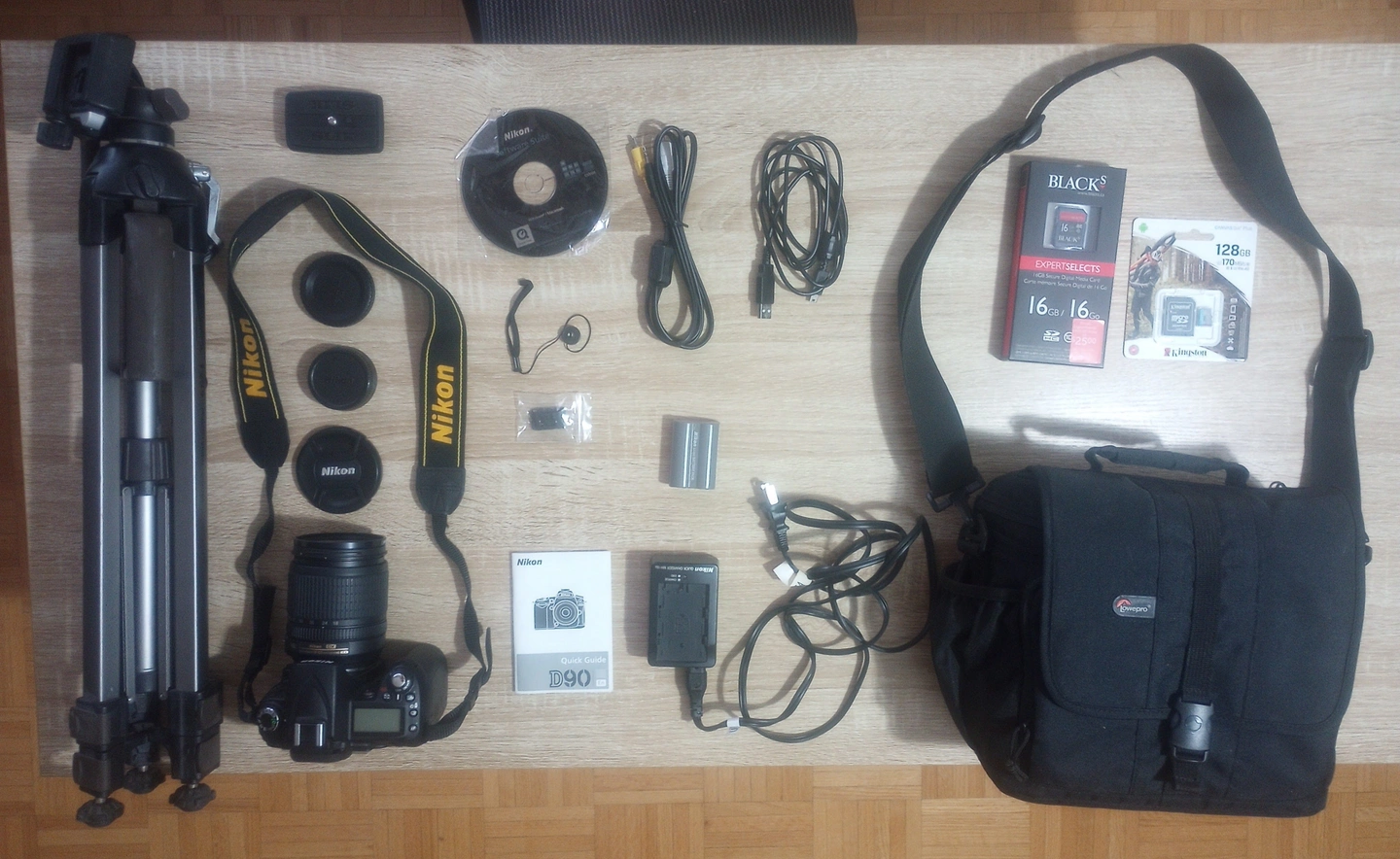 Nikon D90 DSLR Camera, Carry Bag, Tripod, SD Cards, and more