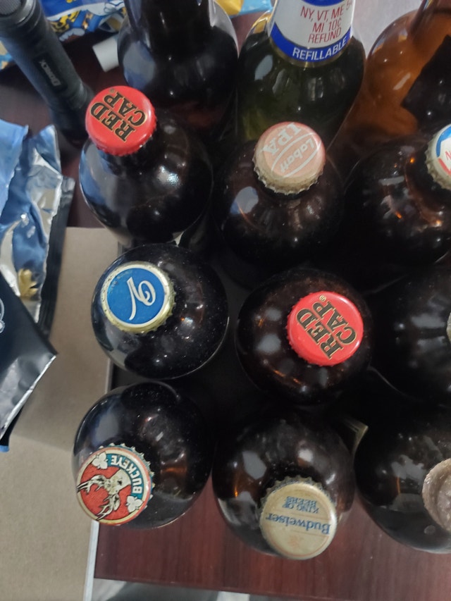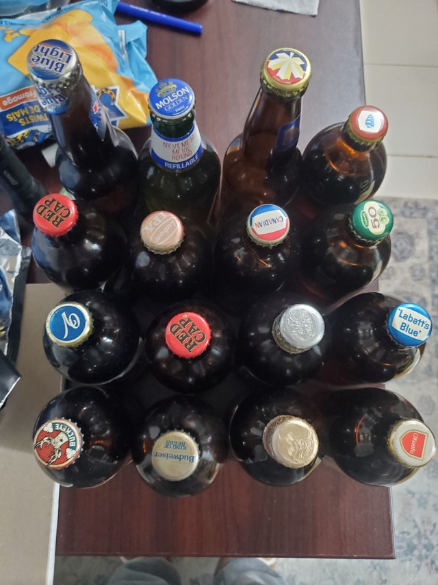 Sealed, never opened vintage stubby beer bottles. Caps are on, and paper labels are in mint condition. Selling as a lot of 16 for $95, or $20 each.
