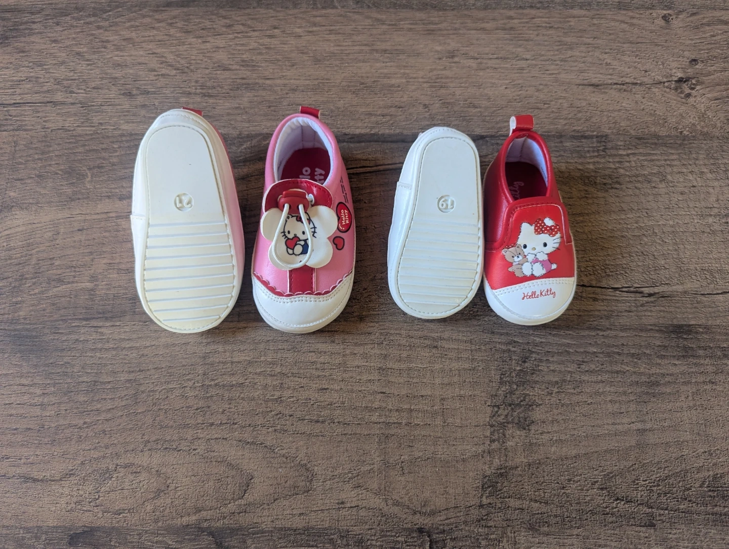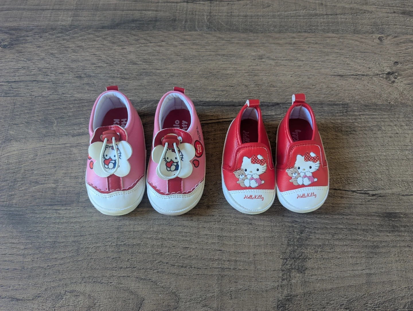 Selling toddler girl hello kitty shoes. Shoes are both brand new and came from Japan. The lighter pink is size 5.5inches and the red is 4.5 inches.