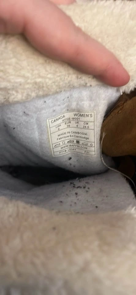 Warm Baffin winter boots. Tan and black with fluffy white lining. Size 8. Great for cold weather. Pick up: Eglinton x Younge (7 Broadway Avenue).