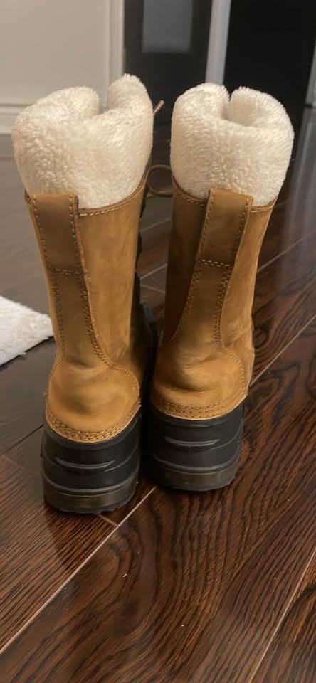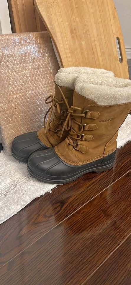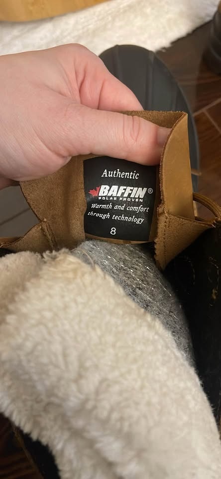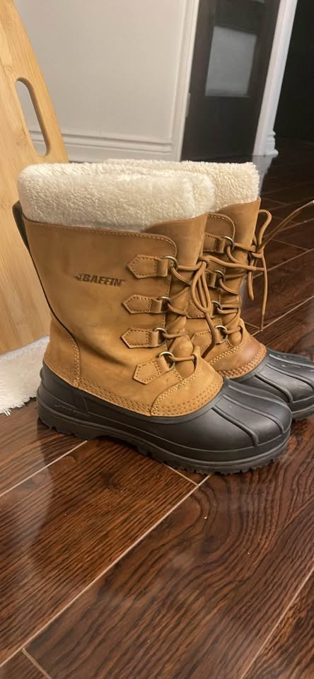 Warm Baffin winter boots. Tan and black with fluffy white lining. Size 8. Great for cold weather. Pick up: Eglinton x Younge (7 Broadway Avenue).