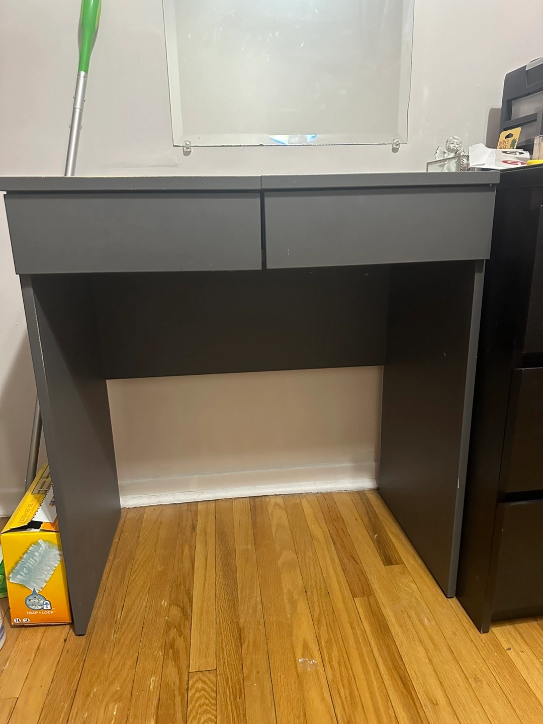 Brimnes vanity in grey colour and red interior. Retails for $130. In good condition, minor wear and tear. Perfect for small spaces. Asking $40