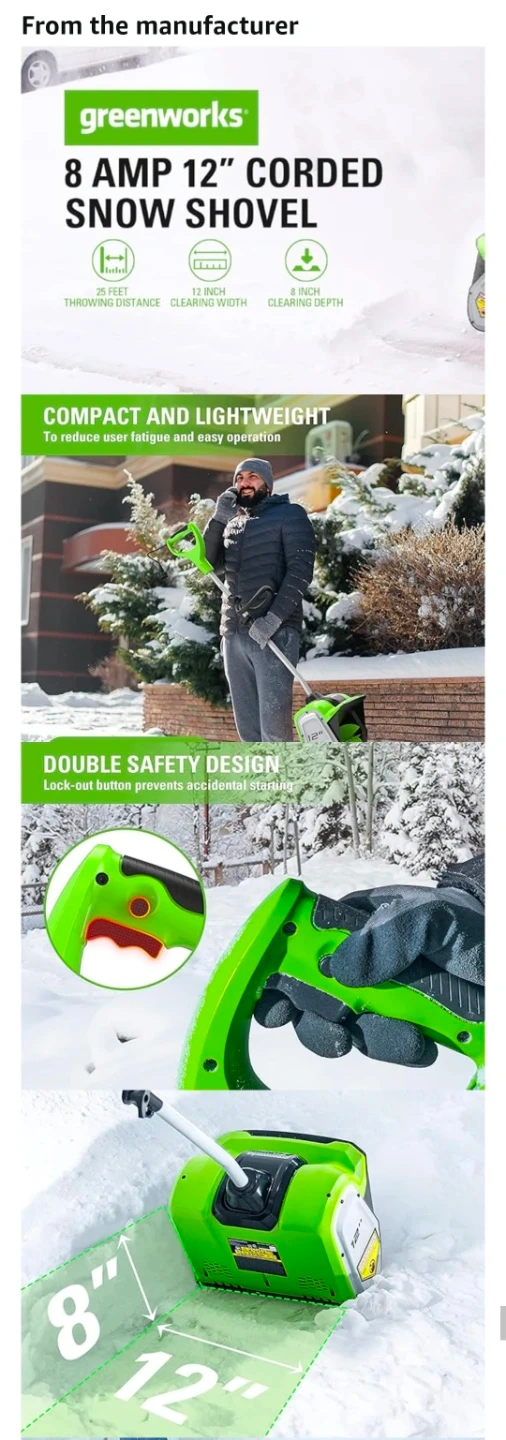 Greenworks 8 Amp 12-Inch Electric Corded Snow Shovel