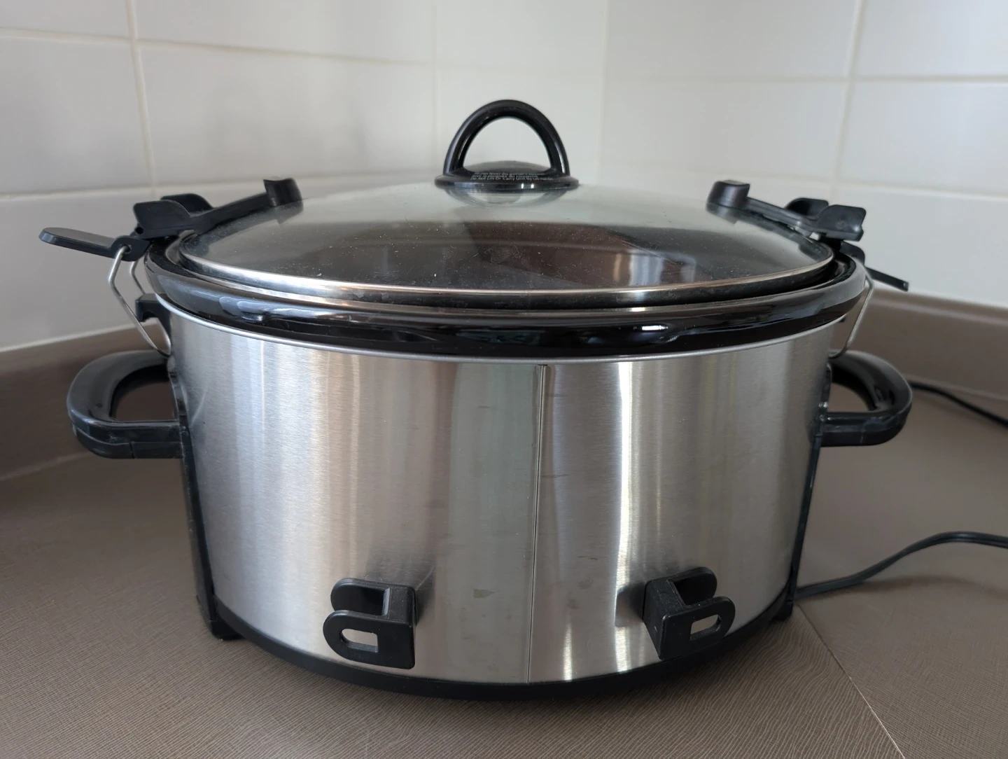 This Crock-Pot is the original slow cooker. It's insulated for travel and has multiple cook time settings. The lid locks securely with clips. Have been used just a couple times and well maintained