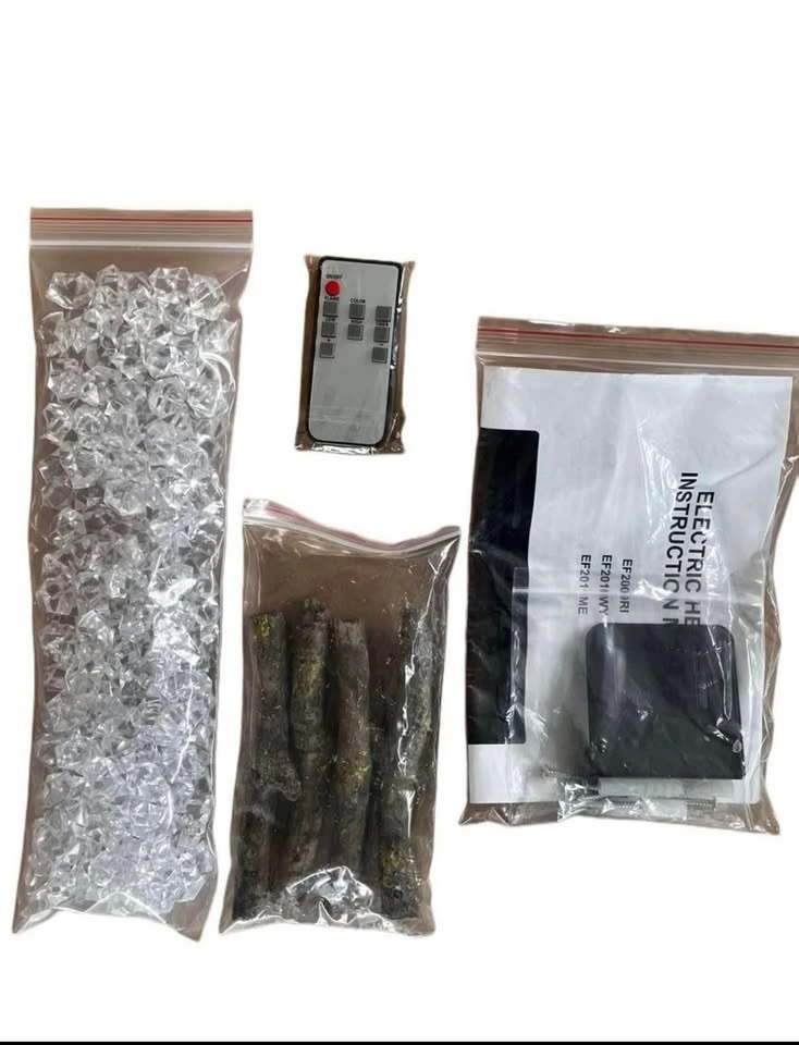 Brand new 60" electric fireplace. Wall mounted or recessed with pebble or log flame effect. Features remote control and touchscreen. Flame effect can be used independently of heat. Manual touch switch on fire. Fan heater with choice of 2 heat settings. Adjustable flame color and brightness. Safety thermal cut-off device. 1400W - 120V - 60Hz.