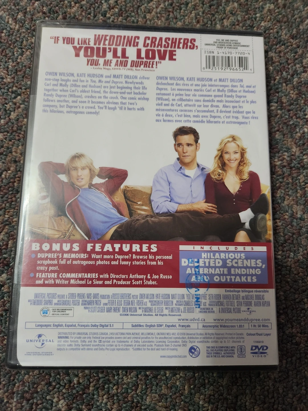 A comedy film starring Owen Wilson, Kate Hudson, and Matt Dillon. It includes bonus features like commentary and deleted scenes. This widescreen DVD is a great addition to your movie collection!
