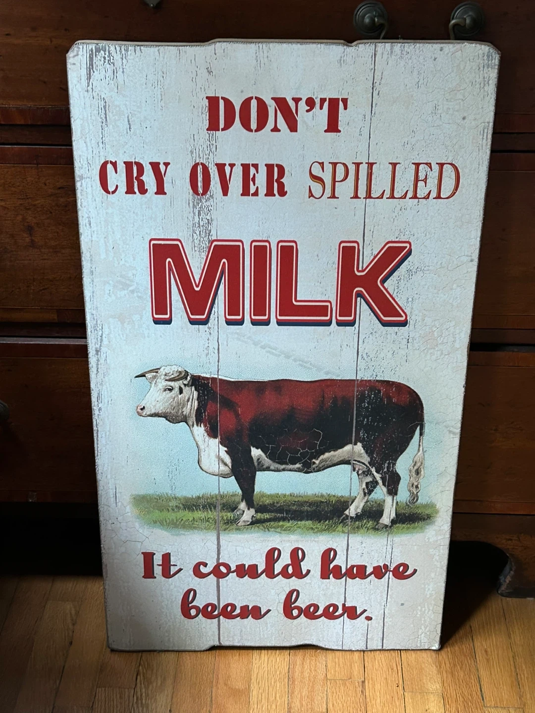 Retro sign bar cow milk beer Don't Cry Over Spilled Milk.. It Could Have Been Beer funny repro 16x28