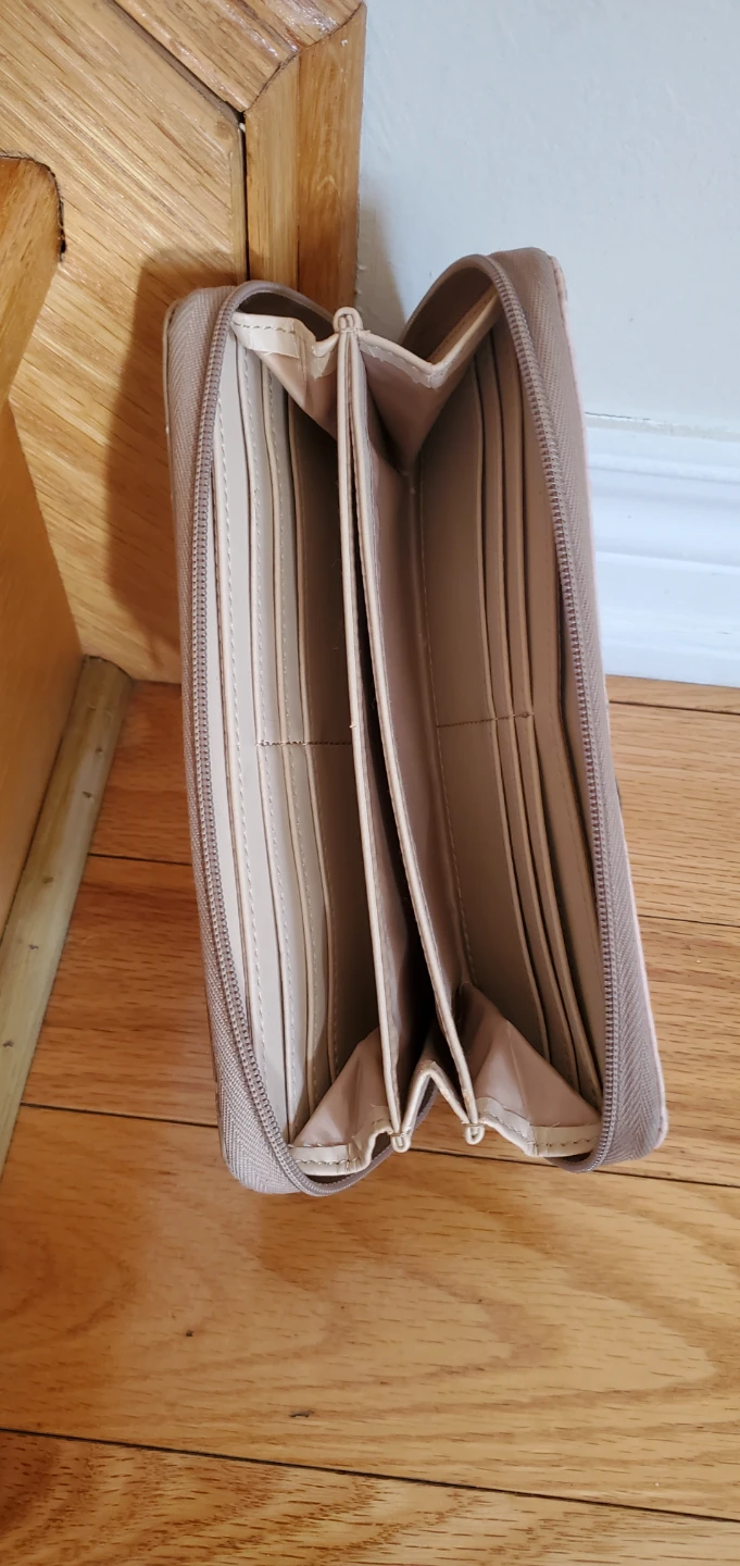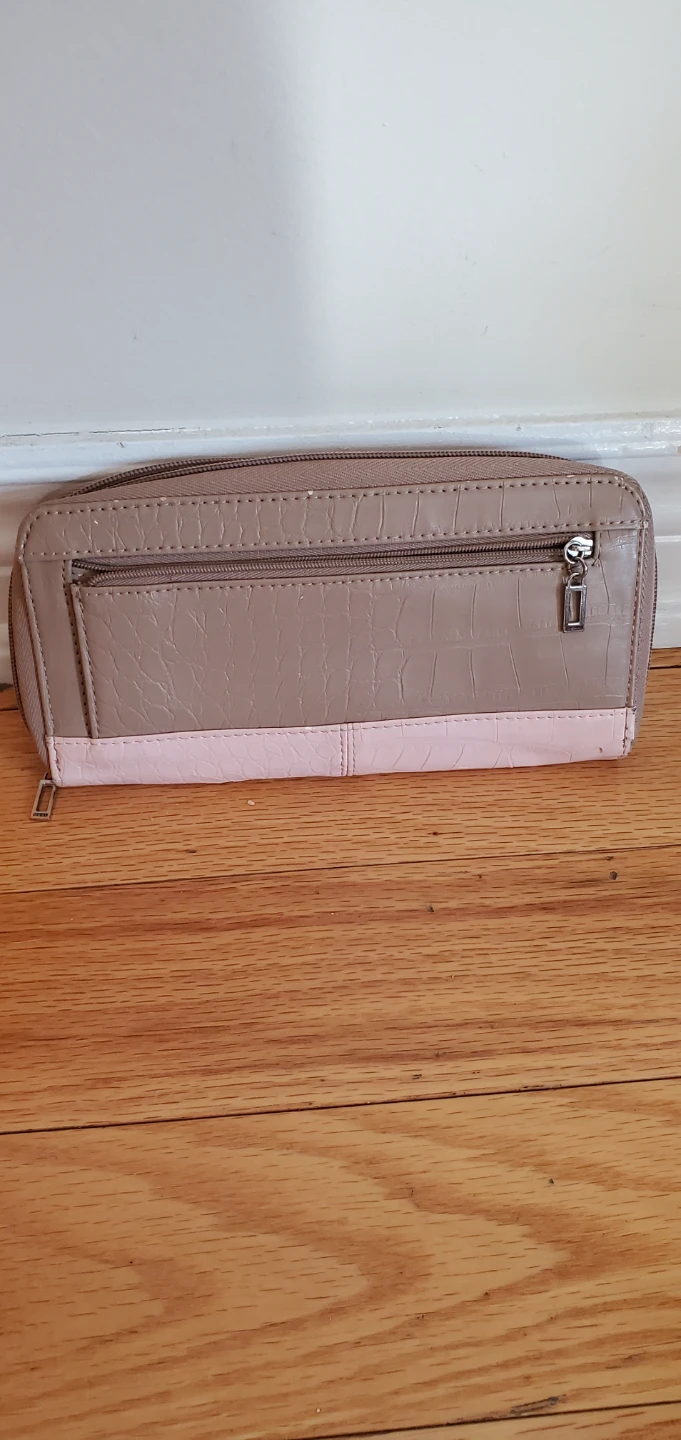 Selling a cute Guess wallet in pink and beige! It has a bow accent on the front and a zip-around closure. Lots of card slots and compartments inside to keep everything organized