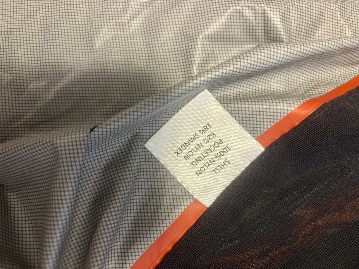 Selling a Basin + Range rain jacket in size small! It's black with an orange zipper. The shell is made of 100% nylon, and the pocketing is 82% nylon and 18% spandex. Perfect for those rainy days!