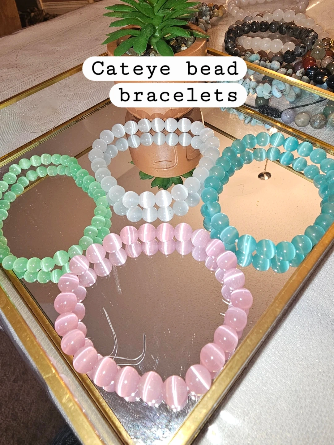 Cateye Bead Bracelets - Pink, Green, White, Blue