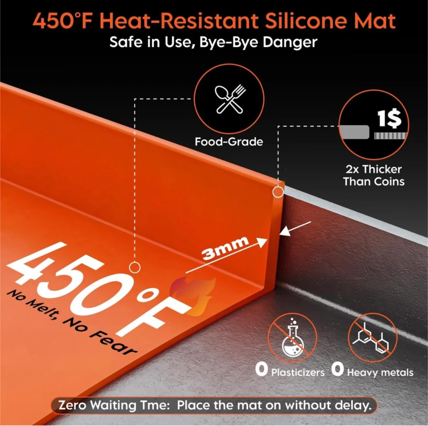| Full Coverage Griddle Protector | - Our non-stick silicone mat will seamlessly cover your entire griddle surface, protecting it from dust, leaves, mice, insects, bird poop, and more. This easy-to-clean mat keeps your griddle grill pristine and always ready for next use