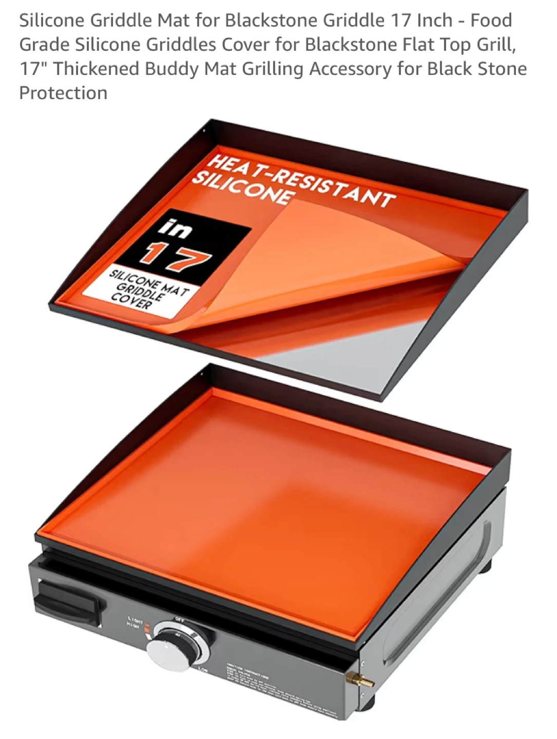 | Blackstone 17" Griddle Exclusive | - This 17" silicone mat is designed to cover the surface of Blackstone 17 inch griddles, fit like a glove with Blackstone popular grill models like: 1917, 1814, 1939, 1650, 1832, 1900, and More. Also fits similarly sized flat top griddles from other brands.【Warning】: Not for Direct Cooking / Heating!!