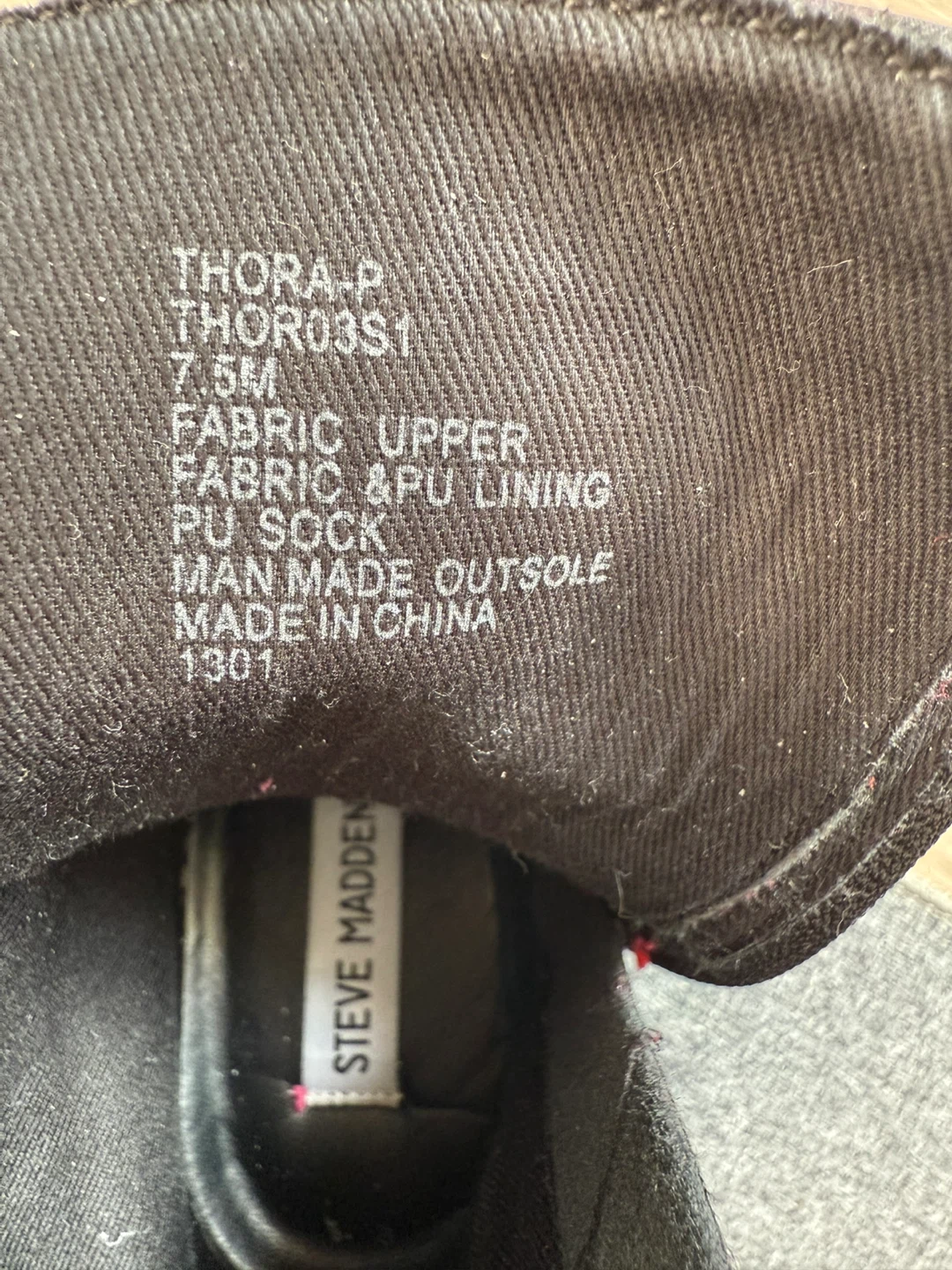 Selling a pair of Steve Madden Thora-P boots in black. They are a size 7.5.