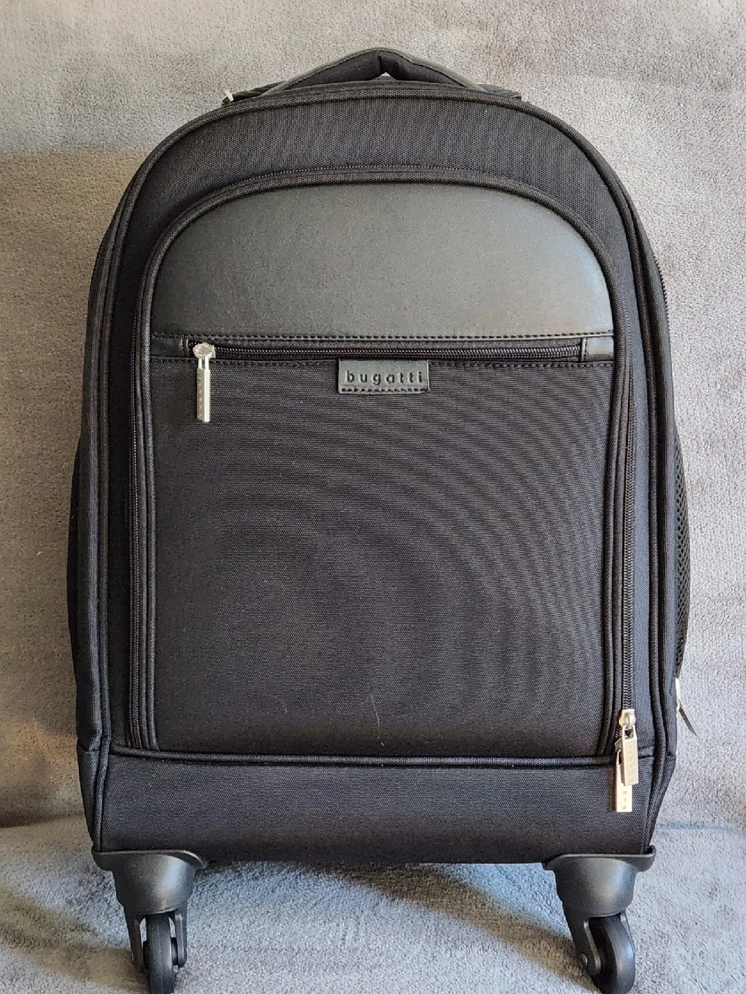 Selling a Bugatti rolling backpack in black. It's in great condition and perfect for travel or school. Features a sleek design and smooth-rolling wheels for easy transport