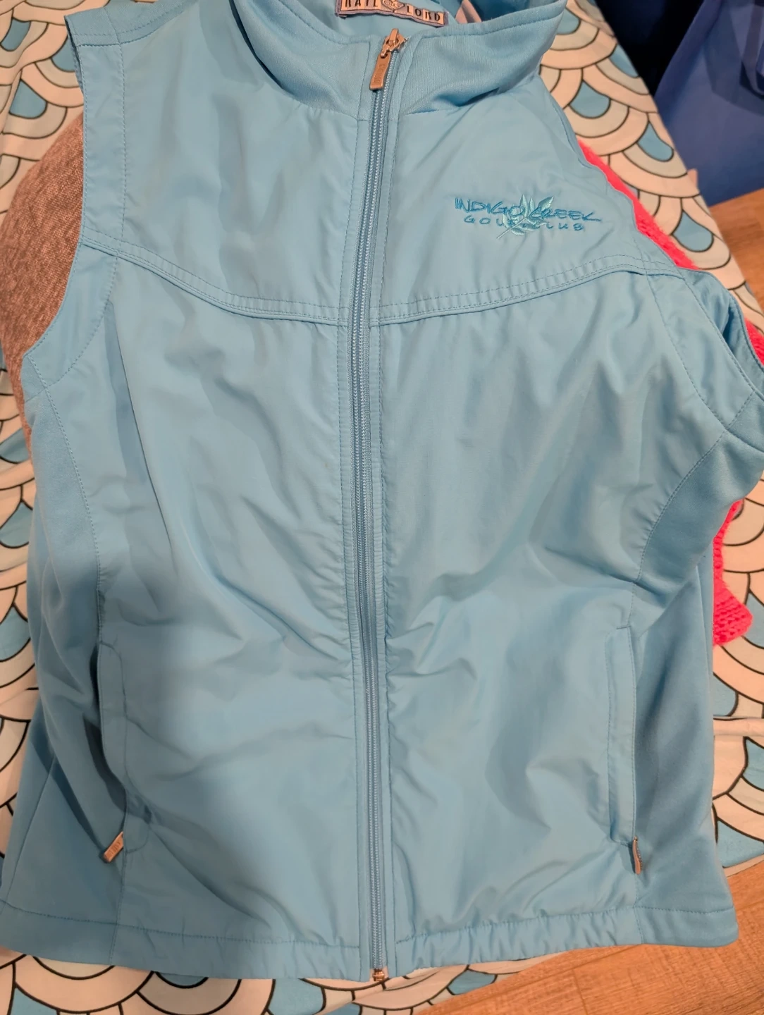 Blue KATE LORD women's golf vest with Indigo Creek Golf Club embroidery. Zipper closure and side pockets. Lightweight design. Bought and never worn.