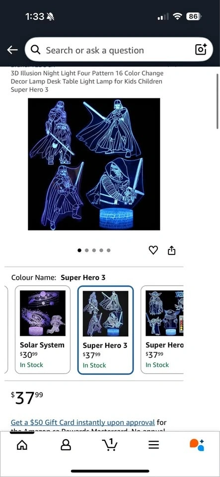 New 3D Illusion Night Light with four patterns and 16 color changes. Great for kids' rooms. Retails for $37.99 on Amazon. Asking $18. Pick up near Coxwell and Danforth.
