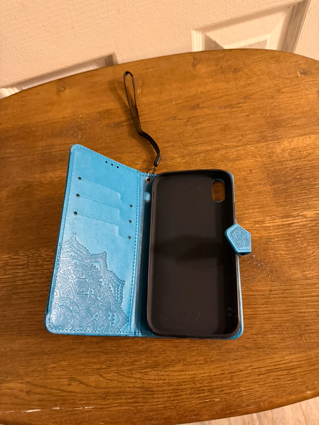 iPhone XS Blue Mandala Flip Wallet Case with Wrist Strap