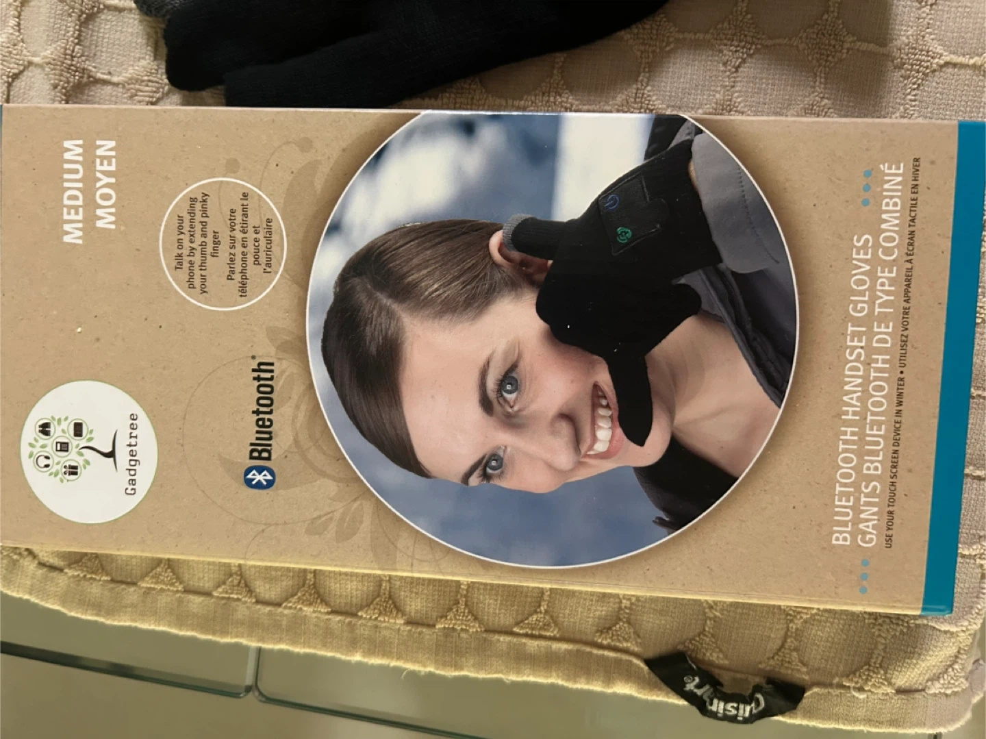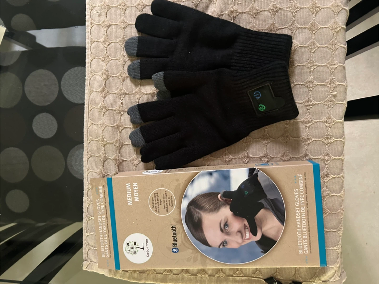 25Keep your hands warm and stay connected with these Gadgetree Bluetooth Handset Gloves! They're a medium size and come in black. Talk on your phone by extending your index finger and pinky finger to the ear and mouth, even in winter! The gloves are touch screen compatible too