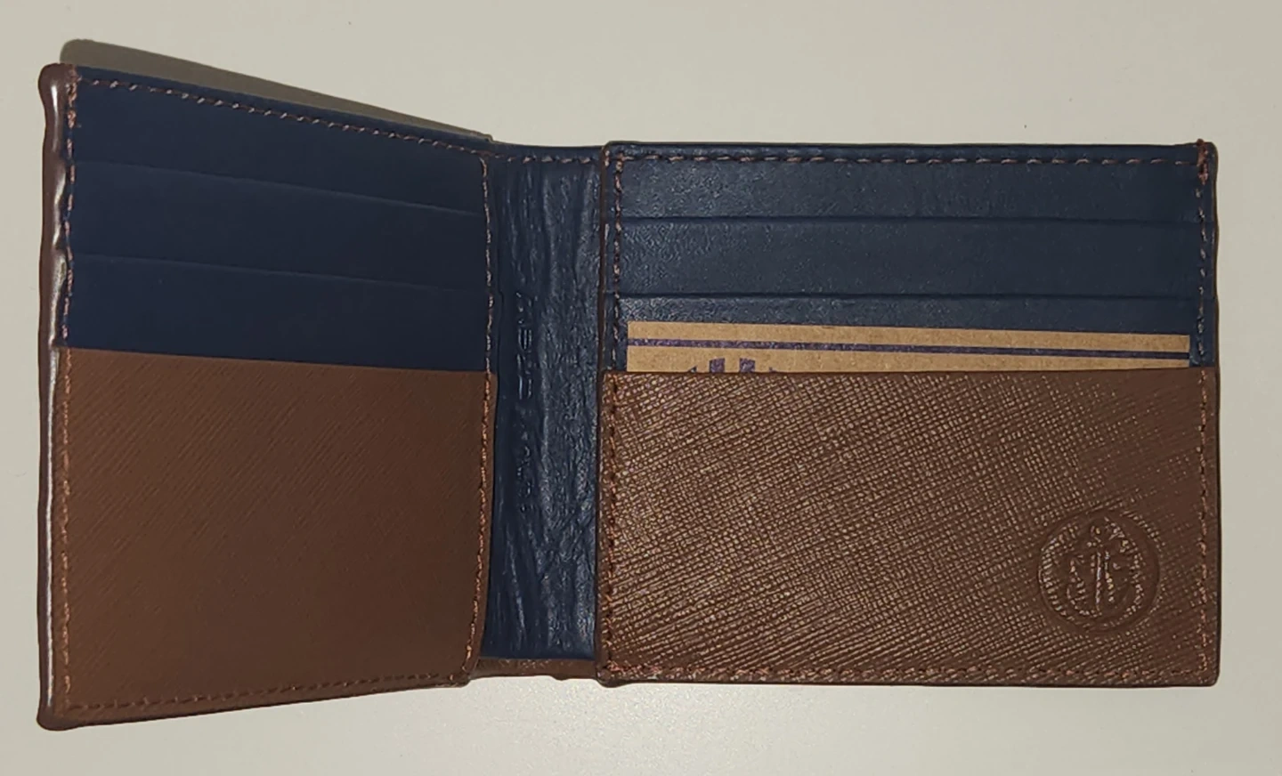 This elegant wallet features a sleek and functional design crafted from genuine Saffiano leather, known for its durability and refined texture.