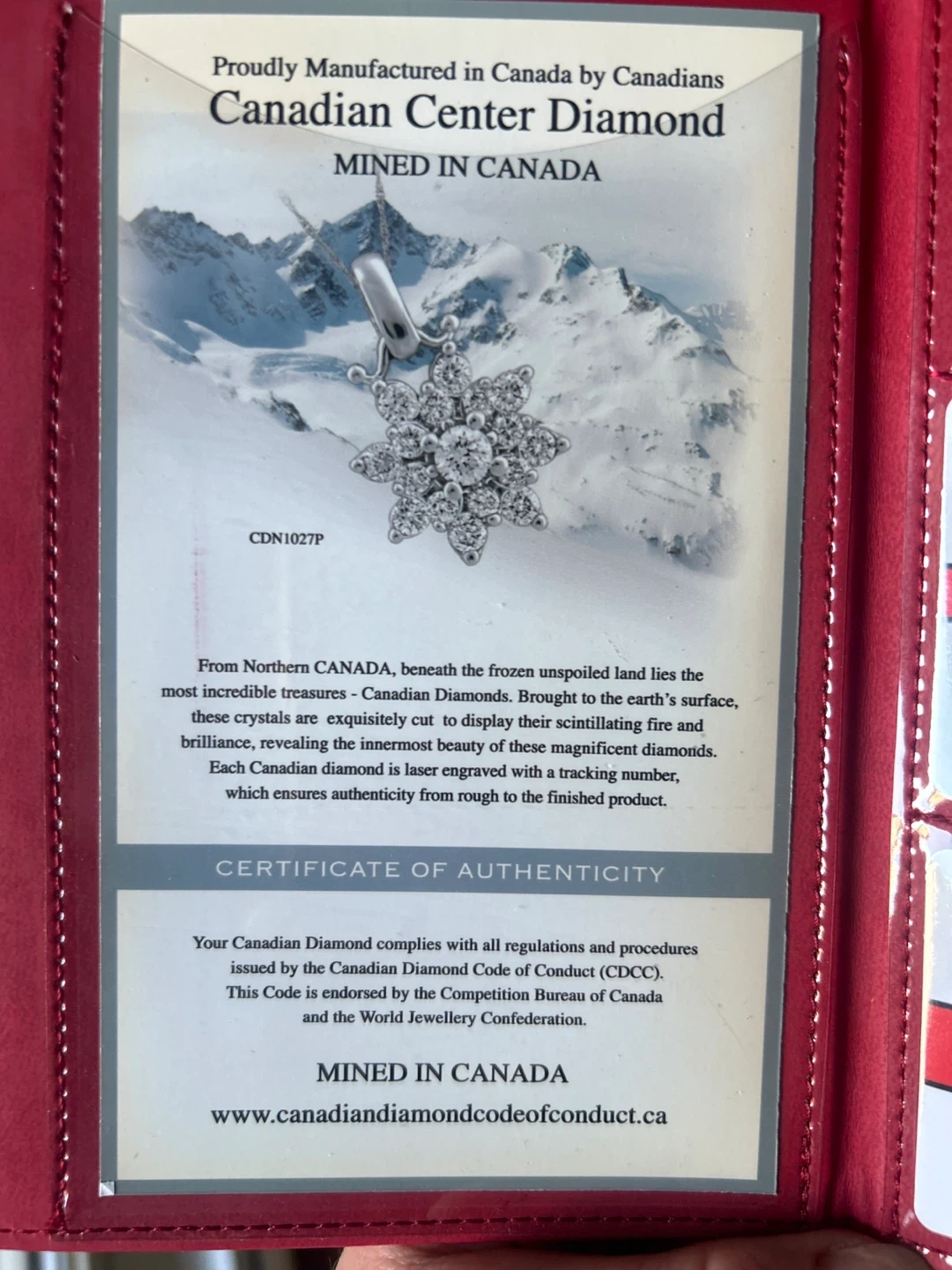 Perfect for Valentine’s Day! Proudly manufactured in Canada, this Canadian Center Diamond pendant features a snowflake design. It's made with 0.101ct of diamond. Comes with a certificate of authenticity.