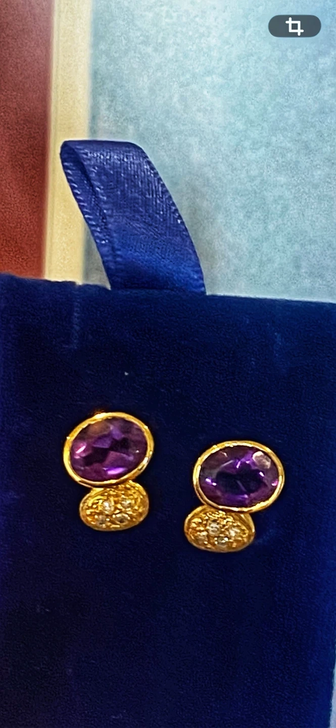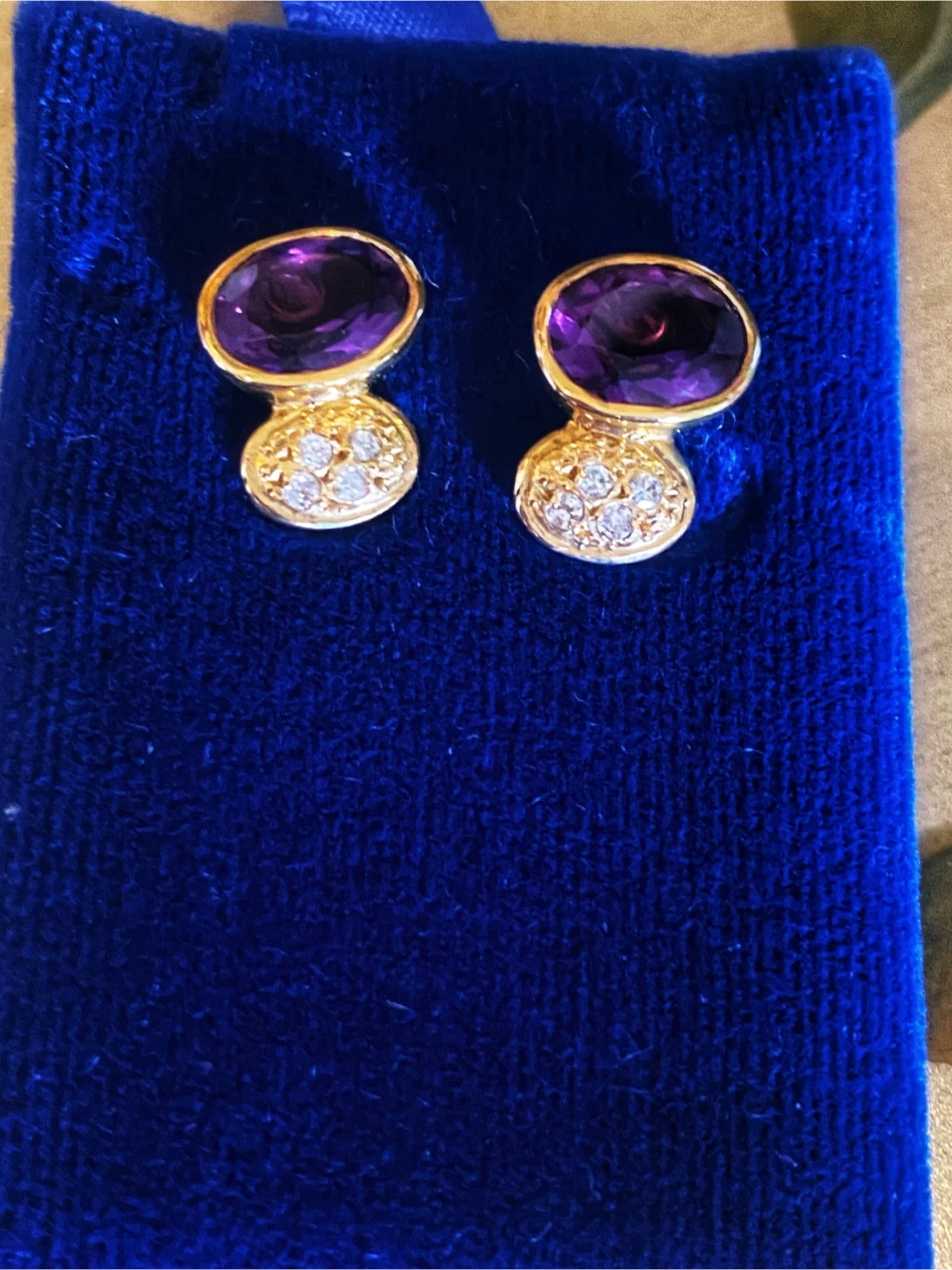 💜Stunning Estate Vintage 18k Gold Amethyst Diamond Earrings from Brazil!💜These earrings add a touch of sparkle and sophistication to any look! 💜Perfect for adding a pop of colour to your jewellery collection.💜 H.Stern💜