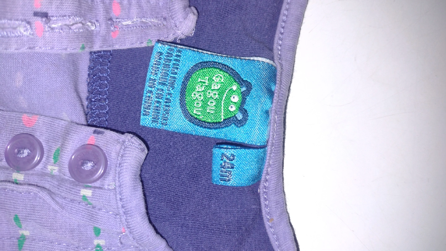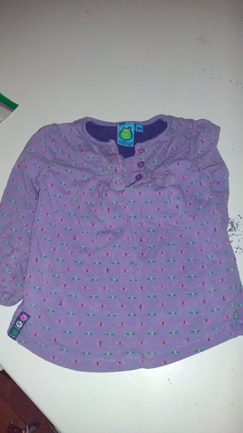 Here's a cute purple long-sleeve shirt from Gagou Tagou in size 24M. It features a fun pattern and is in good condition. Perfect for your little one!