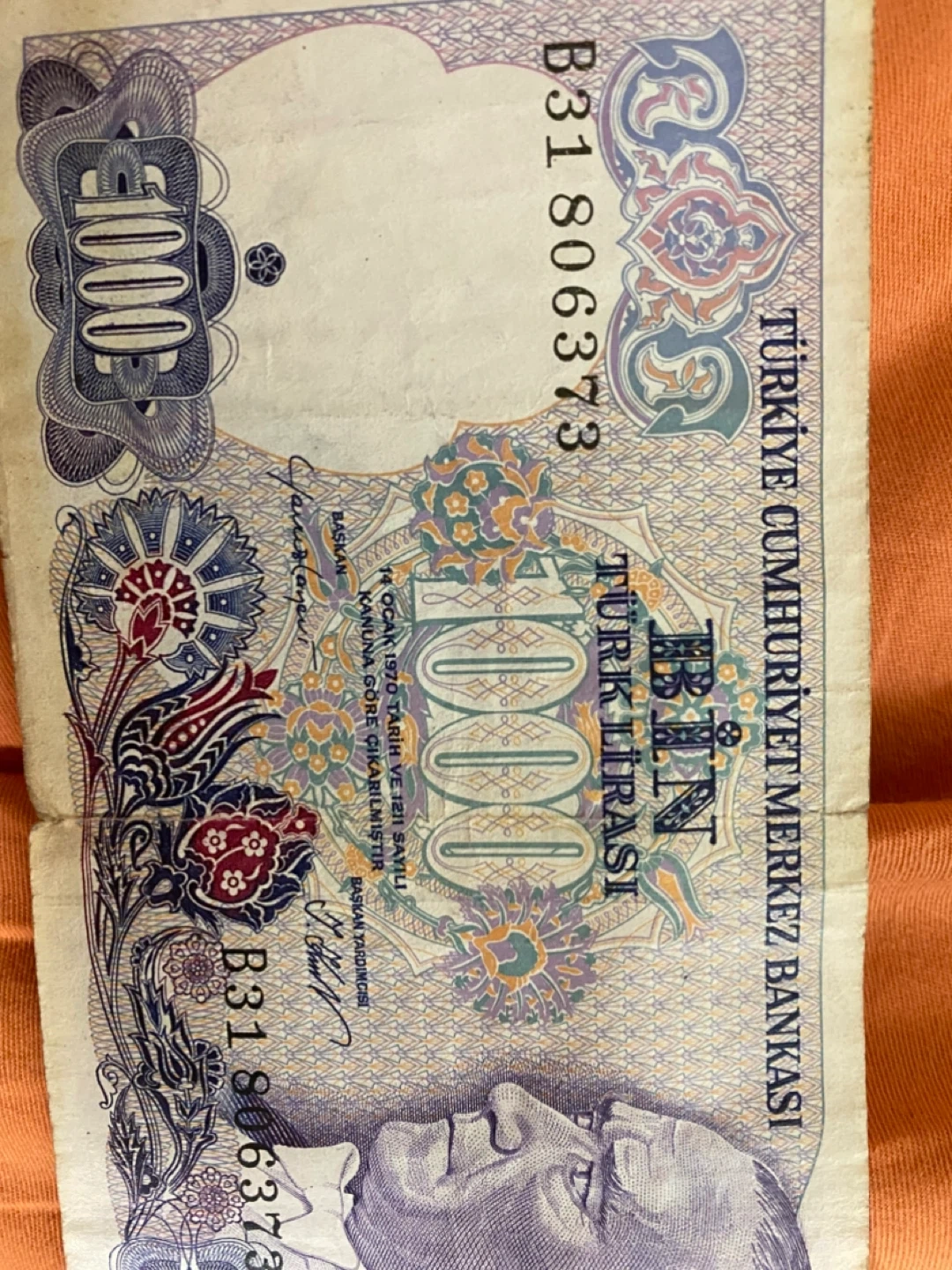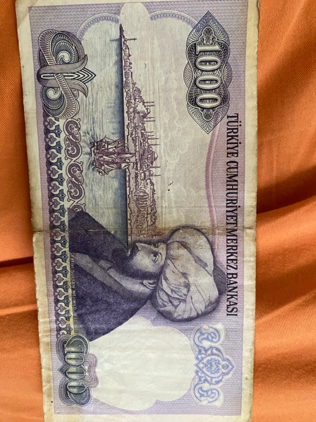 Bundle of assorted foreign banknotes including 10 Turkish Lira, 1000 Turkish Lira, 10 Tenge, and 1 Tenge. These bills are from Turkey and Kazakhstan. They are paper currency.