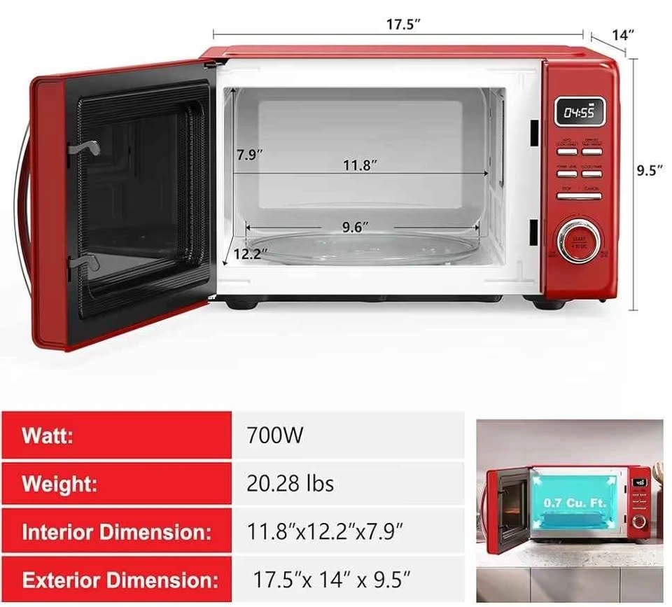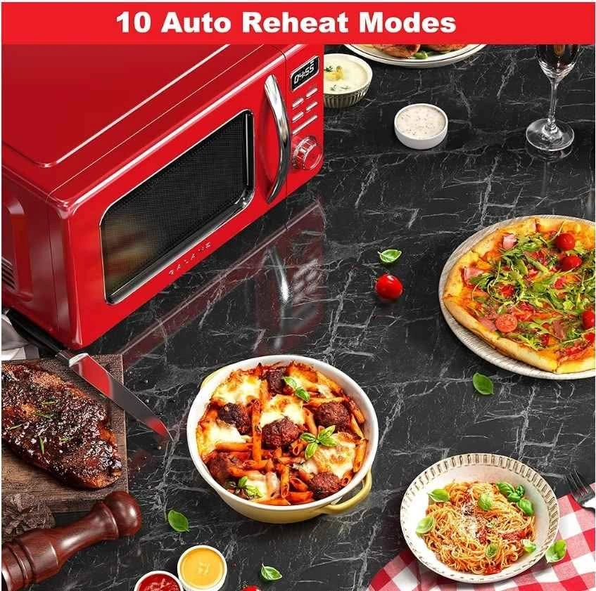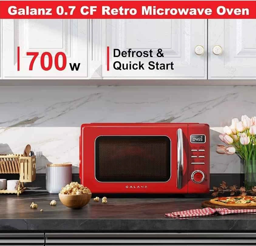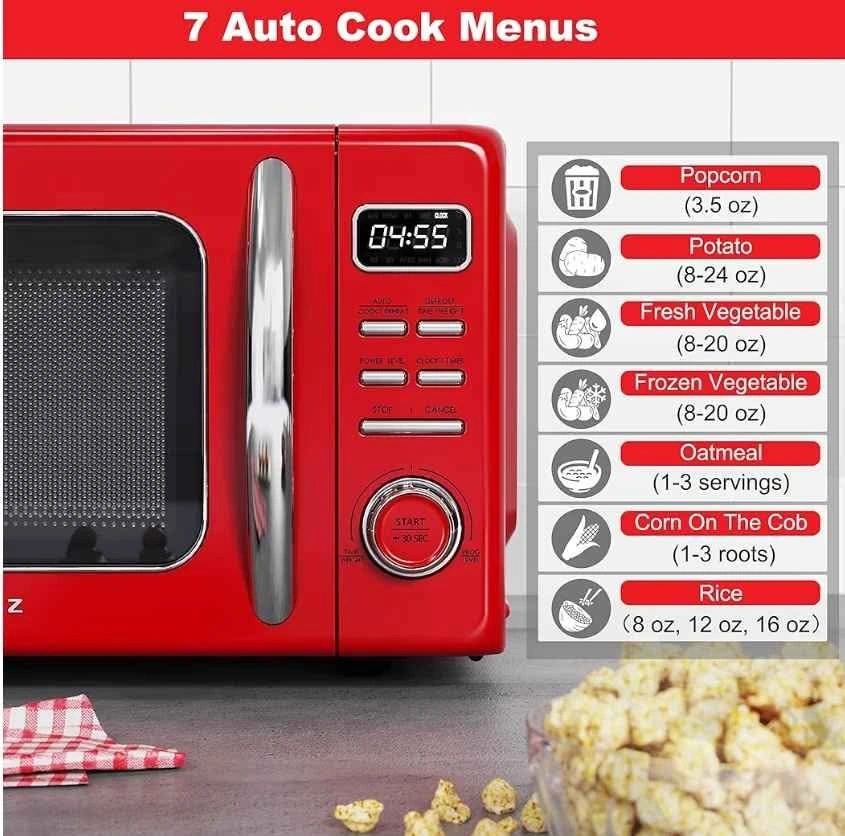 89Galanz GLCMKZ07RDR07 Retro Countertop Microwave Oven with Auto Cook & Reheat, Defrost, Quick Start Functions, Easy Clean with Glass Turntable, Pull Handle, 0.7 cu ft, Red
