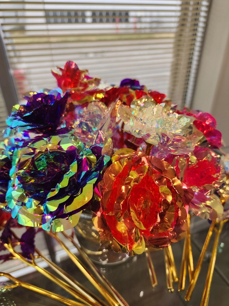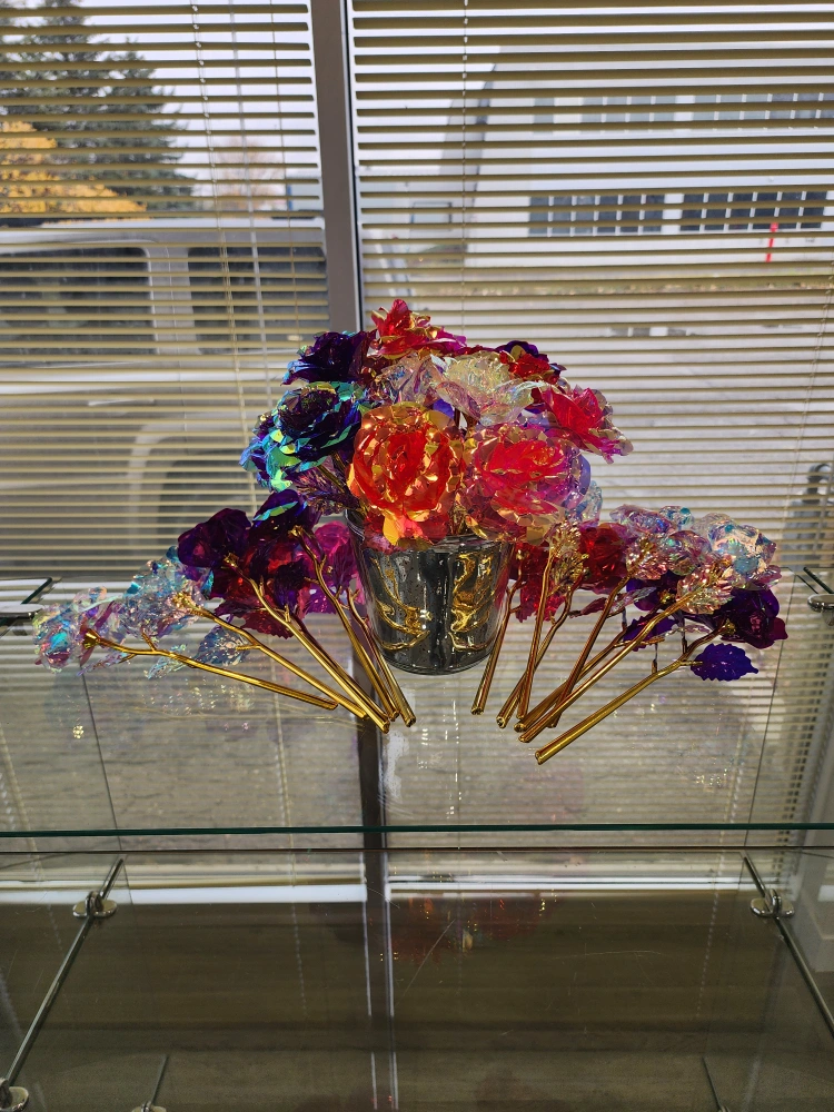 Galaxy Roses, a prism in rose form. $5 ea or bouquet of 5 for $20. Price firm.