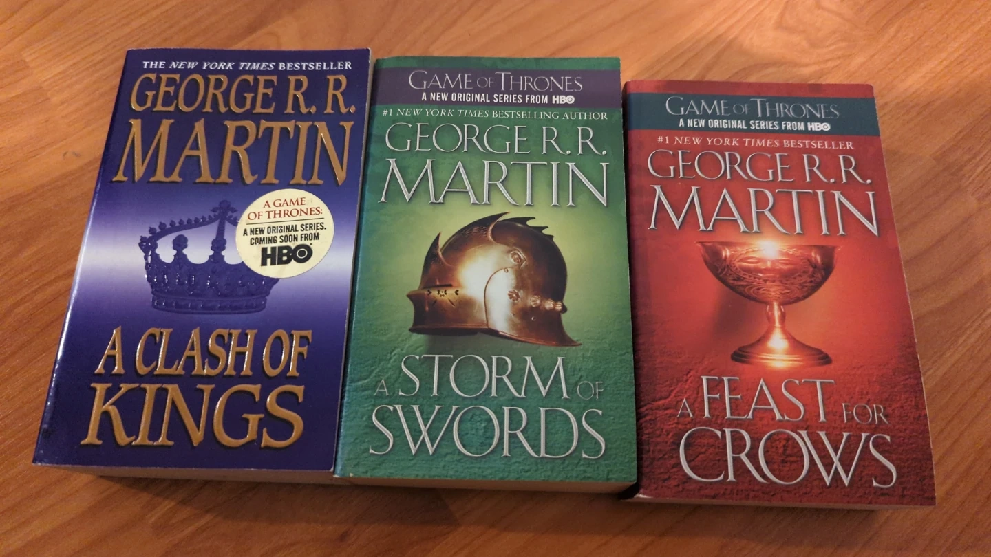 60Selling a set of three books from the 'Game of Thrones' series by George R.R. Martin: 'A Clash of Kings', 'A Storm of Swords', and 'A Feast for Crows' These are New York Times bestsellers and a great addition to any fantasy collection.