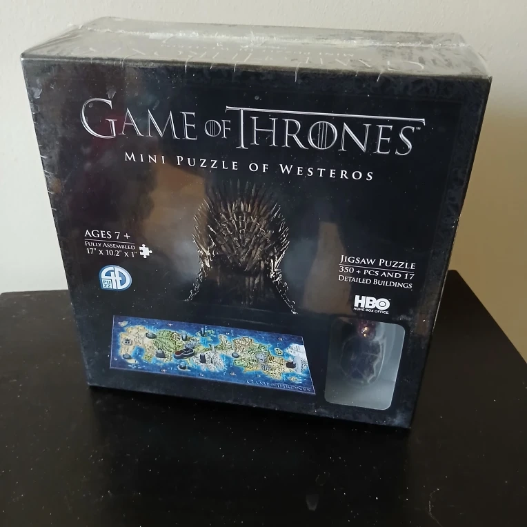 45Selling a brand new, still-sealed Game of Thrones mini puzzle of Westeros! It's a jigsaw puzzle with 350+ pieces and 17 detailed buildings. Fully assembled, it measures 17" x 10.2" x 1". Perfect for any GoT fan!