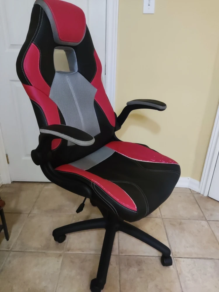 10Selling a gaming chair in black and red. It has some wear and tear, as you can see in the photos, but it's still functional and comfy for gaming or working from home!