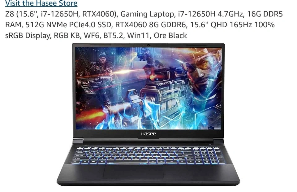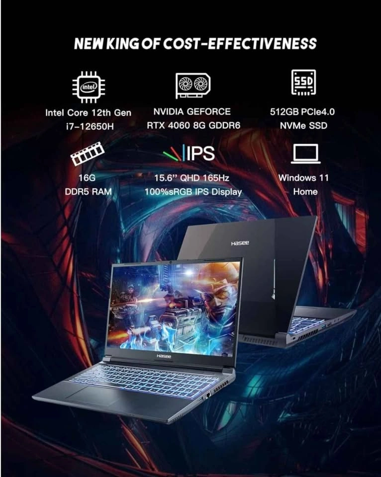 Hello, selling a laptop with Intel I7 12th gen, Nvidia RTX 4060 8GB VRAM which allows the latest "fluid motion" to double fps with Ai l, works great and perfect match for gorgeous 16" 2.5K res.1440p 165hz IPS display 100%RGB absolutely stunning mate display with little to no glare or reflections and there's plenty of room with 2tb NVME m.2 and 1tb HDD for your saves. Comes with 16gb DDR5 RAM and WIFI6/2.5GB Ethernet keeps fast a stable connection. There's great COPPER cooling in this machine, and amazing software for MuxSwitch battery can last 2hr if just surfing the web or watching YouTube. The laptop will come with charger that is surprisingly small for 230w, included HDMI/DP cables for 4K120hz ready TV's and monitor and a carrying case with shoulder strap. It's a great a laptop, it's small, quiet, productive, barely used. Thank you for reading.