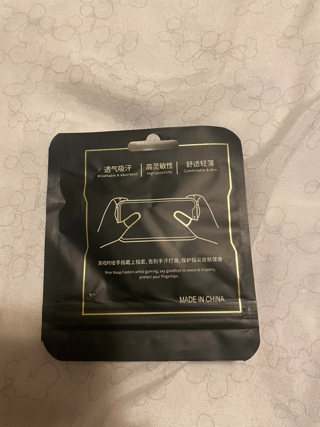 68These black gaming finger sleeves are designed to be breathable and absorbent, ensuring high sensitivity and comfort while gaming. They are comfortable and thin, so you can say goodbye to sweat and slippery fingers. Made in China. Brand new never used still in its pouch!