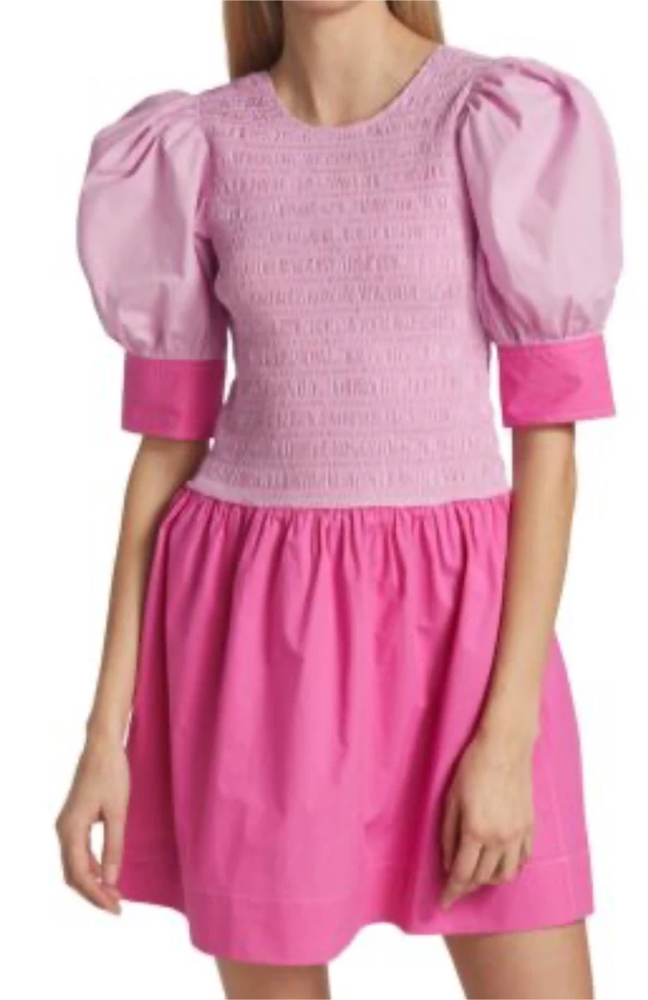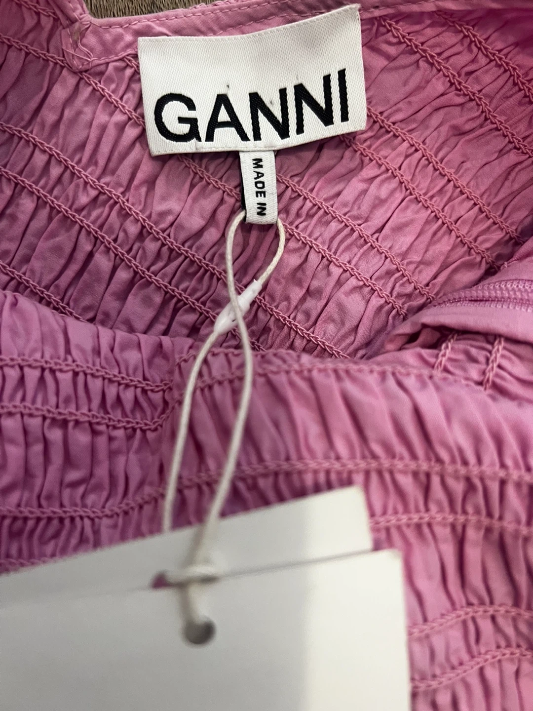 Authentic GANNI pink shirred mini dress organic cotton! Never worn. With tags.