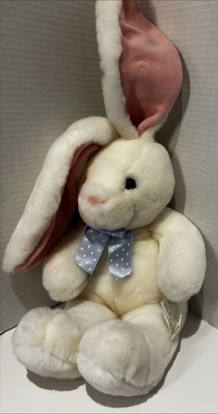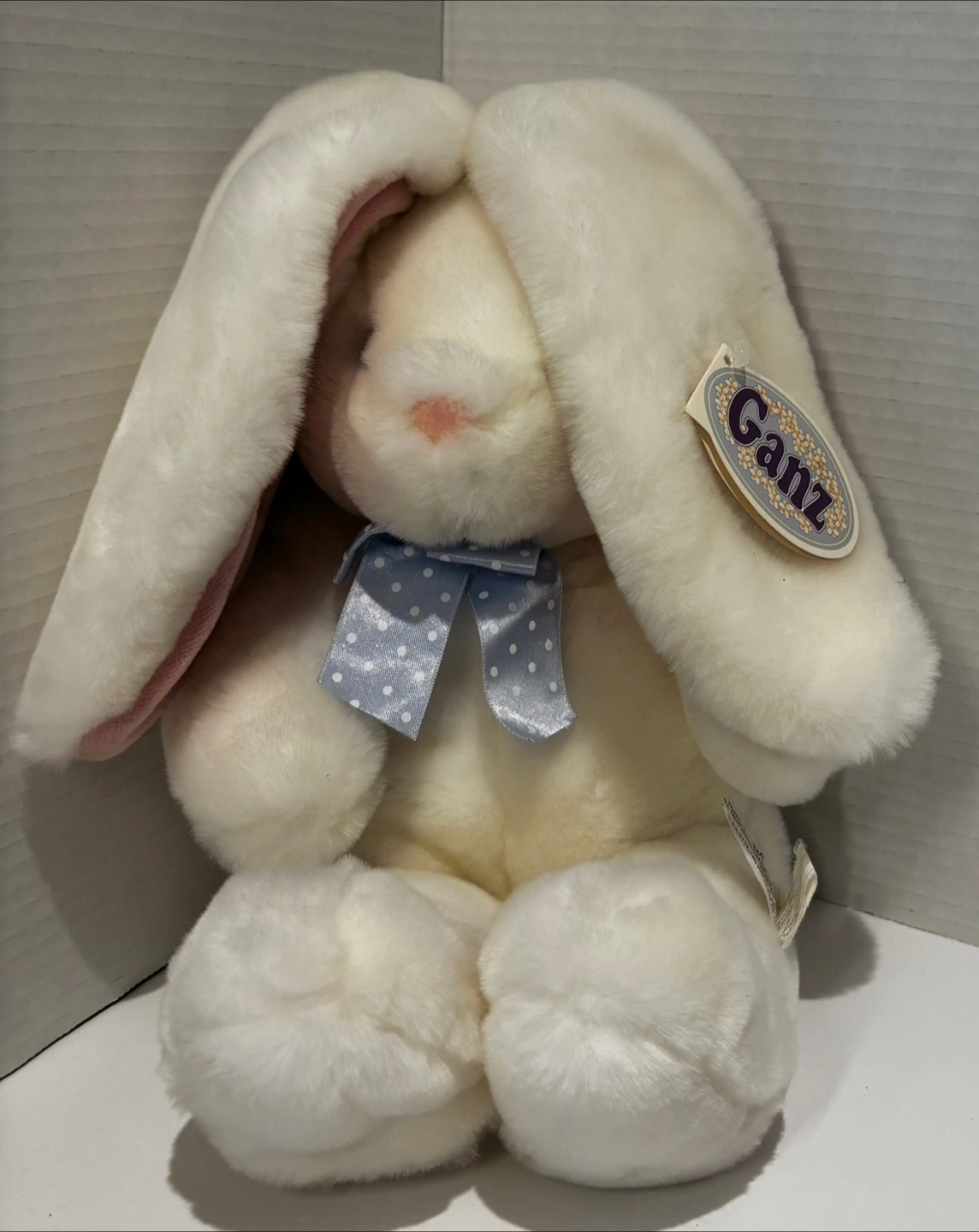 Discover the charm of a vintage Ganz Bunny Rabbit, a treasured collectible from 1998. This delightful plush toy features the iconic NUZZLES design, where its soft white fur meets an endearing pink, lop-eared expression, bringing a smile to any collector's face. Crafted with the quality that Ganz is known for, this ultra-rare find is a testament to the timeless appeal of their plush creations. Ideal for enthusiasts of vintage toys or Ganz collectors, this Bunny Rabbit is a delightful addition to any collection, ready to be admired or to bring joy to a new generation of playtime enthusiasts. Has tag still on it in great condition. Please note some damage to the material tag in last pic.