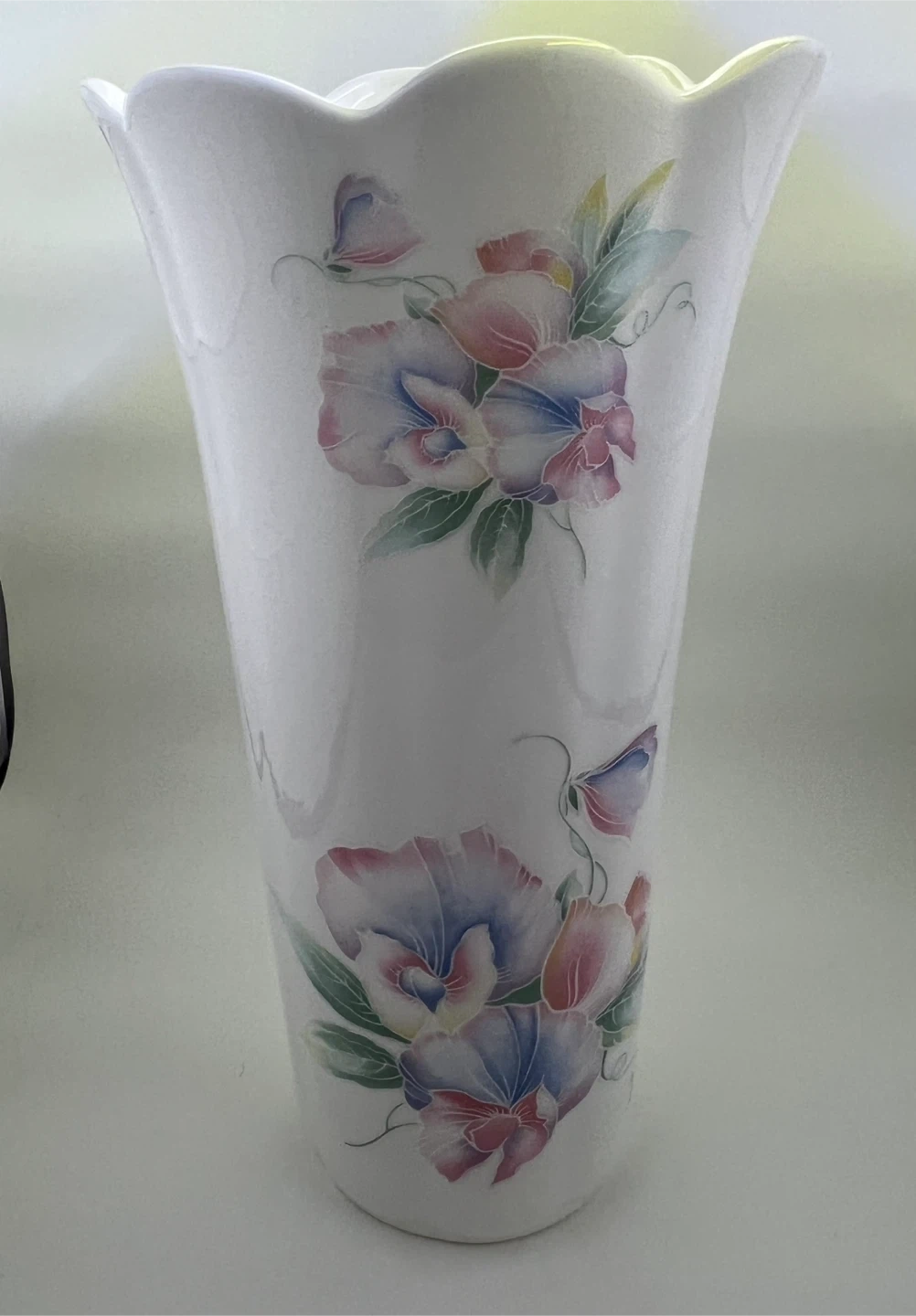 A delicate pastel floral motif, on a crisp white background