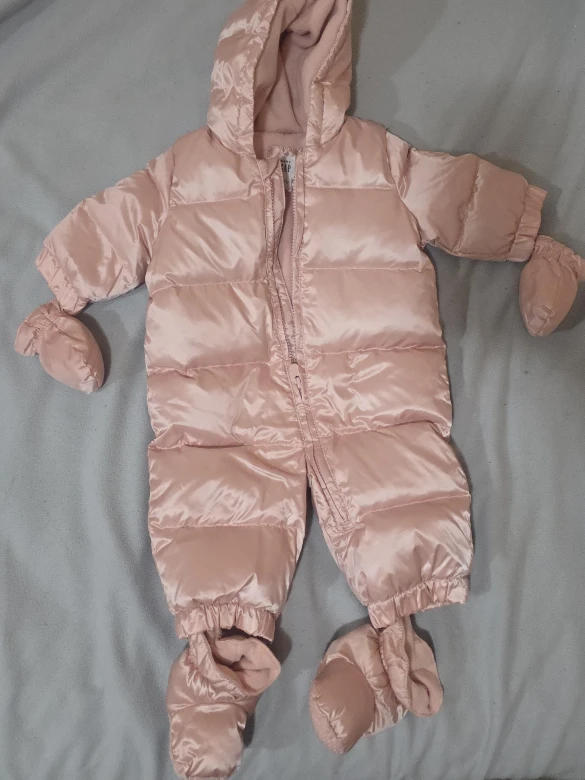 15Super cute and cozy GAP baby snowsuit in a lovely pink colour! Perfect for keeping your little one warm during the colder months. It includes mittens and booties to keep your baby snug from head to toe