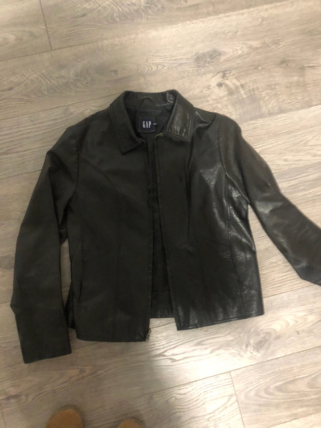 Women's black leather jacket. Full zip closure. Long sleeves. Classic style. Good condition. $10 for delivery